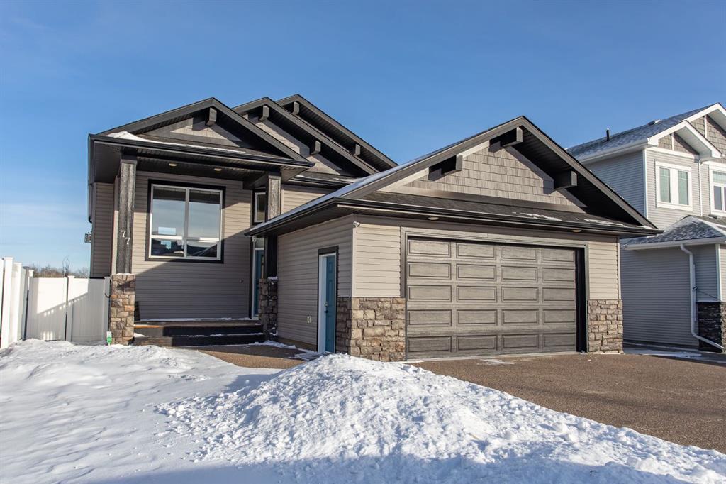 Welcome to 77 Ash Close, a stunning home nestled in a quiet close in the charming town of Blackfalds. This sought-after location offers low traffic with a one-way in, one-way out design, and backs onto serene greenspace and the Trans-Canada Trail system. Perfect for nature lovers and outdoor enthusiasts, the trail system connects Blackfalds to both Red Deer and Lacombe, offering endless opportunities for walking, biking, and exploring the picturesque surroundings—or, if you’re feeling really adventurous, you could follow the trail all the way across Canada (but only if you really want to). This beautifully finished 1155 sqft walkout home features 4 bedrooms and 3 bathrooms, offering plenty of space for families or those who love to entertain. The east-facing backyard ensures you’ll enjoy warm morning sun, creating the perfect ambiance for your coffee on the deck or patio. Inside, you’ll find 9-foot ceilings and durable vinyl plank flooring throughout the home, paired with rich walnut cabinetry and sleek stainless steel appliances for a modern, timeless look. The main floor includes 2 bedrooms (one being the spacious primary suite), a convenient upstairs laundry hookup, and an ensuite that boasts a double sink vanity, water closet, and a luxurious sit-in tub. The fully finished walkout basement is an entertainer’s dream, complete with in-floor heating, a built-in entertainment center, and a stylish dry bar. The lower level also features 2 oversized bedrooms and a spa-like bathroom with a full shower. Outside, the spacious yard offers endless possibilities, from hosting gatherings to creating a play space for kids or pets. The yard is fully fenced with maintenance-free vinyl fencing, ensuring privacy and ease of care. To top it all off, the home is equipped with air conditioning to keep you comfortable year-round. 77 Ash combines modern living with outdoor accessibility in an unbeatable location. Don’t miss the chance to call this incredible property your home!