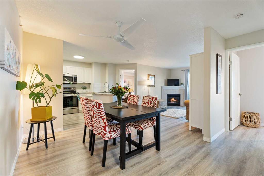 Experience modern comfort in this bright, clean, and renovated two-bedroom, two-bathroom top floor condo. Enjoy cozy evenings by the fireplace and take in lovely southwest views from your private balcony, complete with a gas line for barbecuing. This thoughtfully designed home features in-suite laundry with a convenient stackable washer and dryer. The spacious bedrooms are located on opposite sides of the unit for added privacy and new top down/bottom up blinds as well as black out curtains have been installed in both. Along with the newer flooring the upgrades included a new washer, dryer and refrigerator in 2024. With secure underground parking and a titled stall, convenience meets style in this exceptional living space. A second outdoor stall is currently being rented by this owner and a buyer would have first right to continue the rental. This pet friendly (with restrictions and board approval) unit could not be better located for access to Okotoks' pathway system, to all manner of shopping (Sobeys, Cdn Tire, Walmart, etc) schools, Urgent Care Centre and also quick access to main thoroughfares.