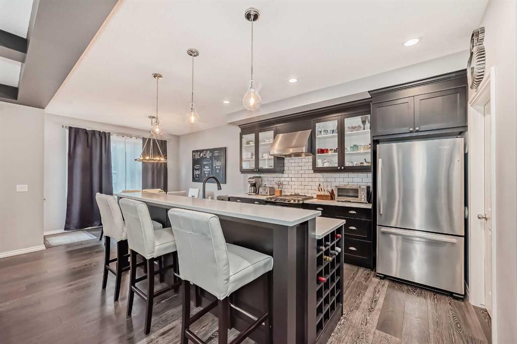 Discover this stunning former show home in Kings Heights where pride of ownership shines throughout. Located in the heart of Kings Heights, this property offers unbeatable convenience—just steps from schools, parks, and all essential amenities. The open-concept main floor boasts 9-foot ceilings and elegant engineered hardwood floors, creating a warm and inviting space ideal for family living and entertaining. Whether you're relaxing in the bright living area or hosting in the spacious dining zone, the thoughtful design ensures comfort and functionality at every turn. Upstairs, the master retreat impresses with a stylish faux brick feature wall and soft recessed lighting, creating a cozy, modern ambiance. A spacious walk-in closet provides ample storage, while the luxurious 5-piece ensuite features a double vanity, soaker tub, glass enclosed shower. Two additional spacious bedrooms showcase unique wallpaper accent walls, adding personality and charm to each space. A second full bathroom and a convenient upstairs laundry room complete the upper level, making everyday living a breeze. The attached garage offers custom cupboards for tools and storage, providing an organized space for DIY projects or seasonal items. A massive backyard deck and firepit for entertaining, you will not be disappointed!