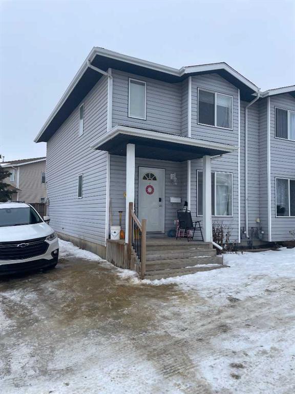 This two-storey duplex is a fantastic opportunity for first-time buyers, investors, or families. The upper level features three spacious bedrooms and a four-piece bathroom, while the main floor offers a bright living room, a dining area, and a functional kitchen. A convenient two-piece bath and main floor laundry add to the home’s practicality. The unfinished basement provides great potential for additional living space, such as a family room and a fourth bedroom. Located directly across from a school and the Abbey Centre, this home offers both convenience and a great community atmosphere.
