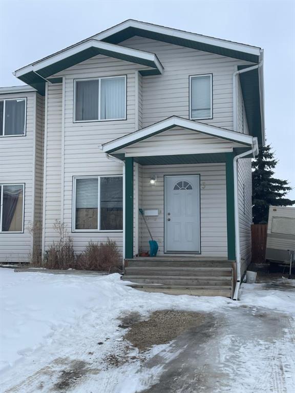 This two-storey duplex is a fantastic opportunity for first-time buyers, investors, or families. The upper level features three spacious bedrooms and a four-piece bathroom, while the main floor offers a bright living room, a dining area, and a functional kitchen. A convenient two-piece bath and main floor laundry add to the home’s practicality. The unfinished basement provides great potential for additional living space, such as a family room and a fourth bedroom. Located directly across from a school and the Abbey Centre, this home offers both convenience and a great community atmosphere.