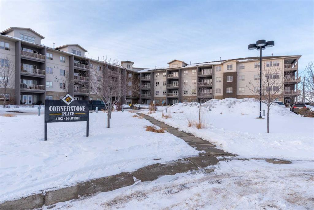 Welcome to this charming 2-bedroom, 2-bathroom condo in the highly desirable Cornerstone Condominiums in Lloydminster, AB. This well-maintained second-floor unit offers the perfect blend of comfort and convenience, featuring a spacious layout and desirable amenities. Step inside to find a bright, open-concept living area, ideal for entertaining or relaxing after a long day. The kitchen is well-equipped with modern appliances and plenty of counter space, while the cozy living room opens up to a covered deck – perfect for enjoying a morning coffee or sunset. Both bedrooms are generously sized, with the master offering a full ensuite bathroom for added privacy. The second bedroom is versatile and ideal for a guest room or home office. You'll have ample space for family or guests with an additional full bathroom. Some features include underground Parking, Air Conditioning for Year-Round Comfort and a covered Deck for outdoor enjoyment. Cornerstone Condos offers a host of amenities designed for a comfortable and active lifestyle. Enjoy access to a fully-equipped fitness centre, a spacious recreation room, and a large foyer area that adds a welcoming touch to the building. Plus, underground parking ensures your vehicle stays safe and protected from the elements year-round. Located in a prime area of Lloydminster, this condo offers easy access to local shopping, dining, and other amenities. Whether you're looking for a place to call home or a low-maintenance investment property, this condo is a must-see! Check out the 3D virtual tour!