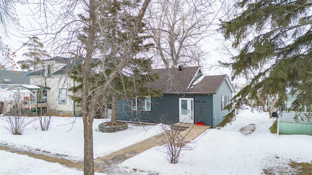 Here we have a nice little place on a quiet Street on the east end of Stettler. Plenty of updates in this home including, newer windows, doors, shingles, siding, electrical, plumbing, and more. Entering this home there is a modest sized entryway, and from there you enter the large dining/living room with original hardwood. With a little bit of elbow grease these floors could be brought back to there original shine. Just off of there is the good sized kitchen with ample cupboard and counter space, and another entrance heading to the back yard. This home was formerly rented by someone in a wheelchair so there is only one bedroom, and 2 bathrooms. If you have mobility issues, then this might work perfectly for you, and if not, the laundry/bathroom could be made back into a 2nd bedroom without having to do much construction. The other bathroom is an updated 4 piece. The basement in this home is pretty much just a crawl space, but is an excellent place for extra storage. The backyard is partially fenced, and also has been utilized for off street parking, and there is also a shed that is included. Across the back alley are storage units, so pretty quiet neighbors behind. Whether you're looking for a retirement home, a rental, or there are only 1 or 2 of you, this one might be worth a look.