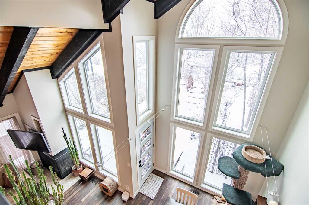 This fully renovated home blends modern decor with rustic charm. Featuring cathedral ceilings with beautiful wood beams and floor to ceiling windows, the open concept living space is bathed in natural light. The spacious loft provides beautiful views of the lake, a large walk-in closet and a spa-like ensuite. The neutral, contemporary design throughout the home ensures a timeless appeal. The front yard is a private retreat, shielded by mature trees, making it a perfect place to unwind or entertain. Just across the road from the beach, you can easily carry your paddleboard to the water, moor your boat in front of your property or take a walk on the main boardwalk to a variety of fantastic restaurants downtown. This property is located amongst million dollar homes, making it an exclusive, sought-after address in a prime location.