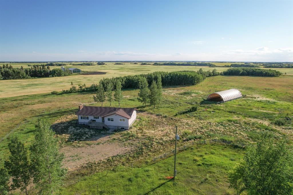 A beautiful new foundation was built here in 2009 and this great bungalow was moved onto it. The bones are strong and the land base is a healthy 40 acres, just across the road from lovely Bawlf, Alberta, and only 20 minutes down the road from one of Alberta's best cities - Camrose! 5 bedrooms and 3 bathrooms with a wood burning stove to create atmosphere also serves as a backup in case of an outage. The back deck enjoys the evening sun and a grand stairway making for easy access to the lower level. A new well was drilled a few years ago and is just waiting for a new pump to become operational, at which point it fills the great big underground cistern so that you've always got a healthy reserve of water on hand. Out back is a 30X60 covered quonset and the round pen to start the horses with. Now for the really sweet part! A tower is being constructed in the northeast corner of the property and it pays a whopping $8500 in surface revenue!! The last couple years the grass has been rented to a local rancher and it's garnered $2500/year. If a person wanted to look at this solely as an investment property, an acreage set up for some animals with a big house like this would probably bring in around $2500/month were it rented out. Bawlf is a mighty little community that offers a k-12 school and nice people. Don't wait to buy land, buy land and wait!