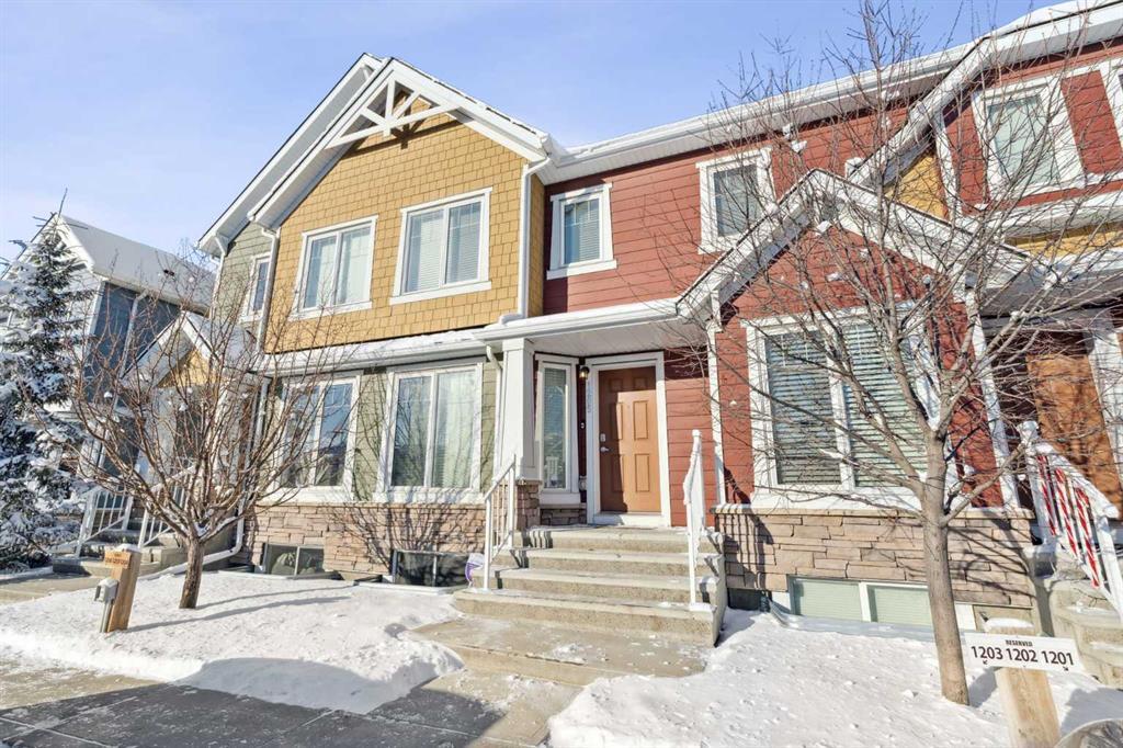 Discover the perfect blend of comfort and convenience in this beautifully designed 3-bedroom townhome with a fully developed basement and 1,700 sqft of total living space. This Home Features: 1.Open-concept main floor with a stylish kitchen, dining area, and spacious living room 2.Modern kitchen with stainless steel appliances and quartz countertops 3.Two generous bedrooms upstairs, each with its own ensuite bathroom 4.Finished basement featuring an additional bedroom and rec room 5.Private, fenced backyard backing onto green space—perfect for relaxing or entertaining 6.Two designated parking stalls for your convenience. Nestled in a prime location, this home offers easy access to nearby schools, Genesis Place, Airdrie’s top recreation facility, featuring a pool, fitness center, hockey arena, and more. Plus, you're just 10 minutes from CrossIron Mills and Costco, making shopping a breeze! This townhome is the ideal choice for families, young professionals, or investors looking for a fantastic opportunity in a desirable community. Don’t miss out—schedule your private viewing today!