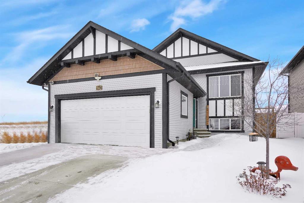 Welcome to this beautifully designed 2017 Lebon show home with attached double garage, nestled in a quiet part of town. This meticulously maintained property offers a perfect blend of modern elegance and functional living. On the main floor you will find an open concept kitchen ~dining~ living room area perfect for entertaining, the large kitchen has plenty of cupboards and counter space plus a large island with seating and a pantry for ample storage. There are three bedrooms on the main floor including a primary suite with an ensuite and a four piece bathroom. The lower level has an expansive family room, complete with a 75" wall mounted TV and a bar area. There is also a fourth bedroom, a 4 piece bathroom and an additional room that is currently used as an exercise space but has the potential to be a fifth bedroom. The home has in floor heat for year round comfort plus has roughed in central vac. Outside you will find a fully fence yard with RV parking a covered deck to enjoy those warm summer days and a hot tub perfect for those relaxing evenings. This home is the perfect mix of style, comfort and convenience. Don't miss your chance to own this incredible property.
