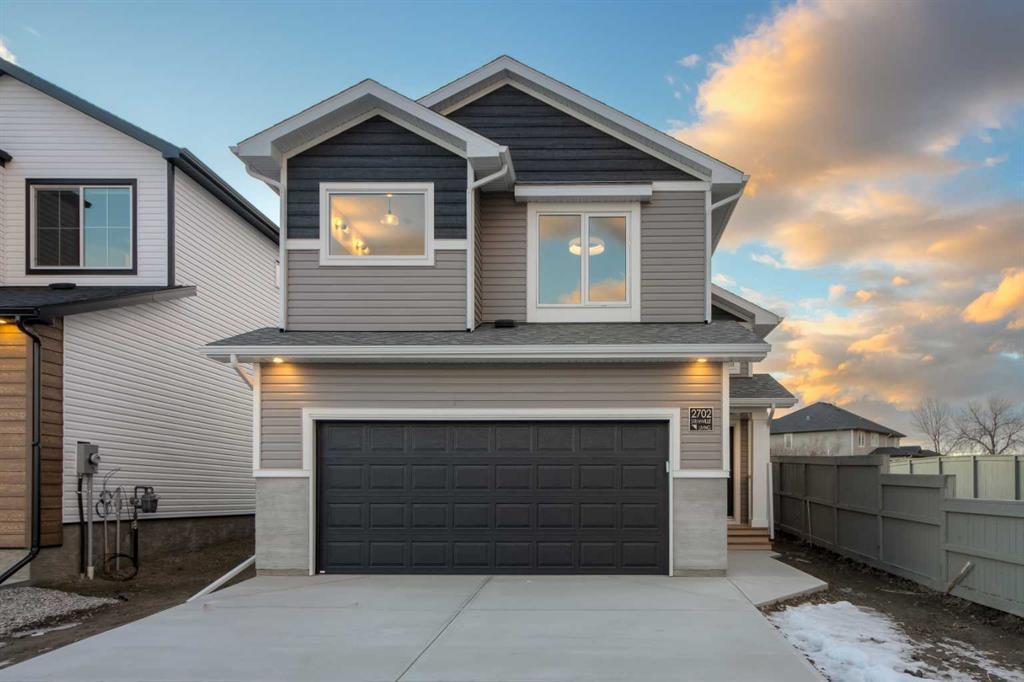 Welcome to the "Hemsdale V” model by Stranville Living Master Builder, located in the desirable south Lethbridge community of Southbrook. This new home is situated merely a few hundred meters from the new Dr. Robert Plaxton K-5 public elementary school, whose property includes a new playground, soccer pitch, baseball diamond, and even a basketball court for today's active family. Southbrook is conveniently located minutes away from big box shopping, various restaurants, and the VisitLethbridge.com arena and event center. This bi-level model greets you with a fantastic foyer up to your main living area with a beautiful kitchen, dining room, and living area. The main floor includes a beautifully appointed kitchen with oak slab and MDF Adora Cabinets, fully tiled backsplash with matte black accents, and quartz countertops for both the base cabinets and island. Stranville Living's top tier appliance package includes a seamlessly integrated paneled Fisher & Paykel fridge, paneled dishwasher, induction cooktop, built-in hood fan, and a stainless steel wall oven and microwave combo unit. A large sliding patio door off the dining room exits onto your future deck and into your backyard that includes partial fencing, backing onto a green strip. The living room faces west and the lighting from the large set of high efficient windows makes this room absolutely glow. The main floor is finished by two additional bedrooms and a staircase leading to your secluded primary suite. The large primary bedroom includes a walk-in closet and a 5-piece ensuite with a stand-alone tub, acrylic shower with sliding glass doors, and a double sink vanity. High efficient mechanical equipment, Low E windows, and spray foam in the rim joists help keep your heating and cooling costs in check. Must be seen to be appreciated! Photos contain virtual staging.