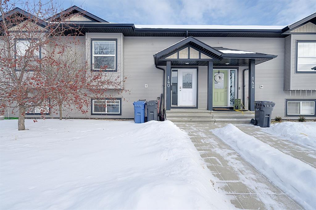 This open-concept townhouse in Penhold, Alberta, offers a perfect blend of modern design and comfortable living. The main floor features an inviting open layout that seamlessly connects the kitchen, dining, and living spaces, creating an ideal setting for both entertaining and everyday activities. The kitchen stands out with elegant cabinetry, a fully tiled backsplash, and stainless steel appliances, ensuring a sleek and stylish cooking experience. Upstairs, a large bedroom/office provides a private retreat complemented by a four-piece bathroom. The downstairs area is fully finished, offering additional living space with two spacious bedrooms, a rec room, another four-piece bathroom, and convenient laundry facilities. Outside, the home boasts a fully landscaped yard with deck and lower patio, providing a serene space for relaxation and enjoyment, perfect for outdoor gatherings or quiet evenings under the stars.