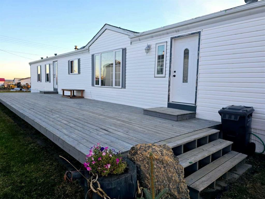 Welcome Home! This spacious 1996 Manufactured Home is warm and inviting, with many updates throughout the residence. All new Vinyl Plank flooring, fresh paint, door handles and fixtures add a modern touch and are sure to impress! This 3 bedroom home hosts a large master bedroom, featuring an ensuite bathroom with a jetted soaker jet, stand up shower and double vanity! The open concept kitchen and living room boast a breakfast bar, plenty of cupboard space, large windows and skylights allowing a plethora of natural light. On the opposite end of the home you will find two more bedrooms and a three piece bathroom. The laundry room has a brand new washer and dryer, as well more as more storage and a second entrance. Outside enjoy your own small homestead and garden, with a new shed for storage. With no neighbors to the front or rear of the home, you can enjoy the gorgeous views of the sunrising above the farmers field across the way. This home is located in a quiet neighborhood, close to schools, parks, and shopping. As well, just behind the home is the Community Garden! The home has brand new windows in the master bathroom and new shingles are being installed first week of May! The furnace has a new blower and motherboard, with all maintenance complete! This is a great home for a first time home owner, with minimal maintenance required. Call today to book your viewing!