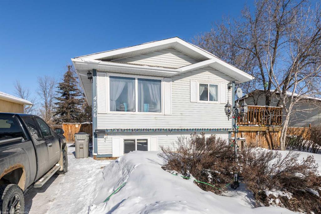 Welcome to 4706 22 Street, an ideal starter home or investment opportunity located on the Saskatchewan side of Lloydminster. This well-maintained bi-level offers a functional layout with 3 bedrooms and 2 full bathrooms. The main floor features a bright living area, a spacious kitchen, and direct access from the dining room to a large side deck overlooking the front street. The fully finished basement includes a generous family room with a wet bar, an additional bedroom, a full bathroom, and a den perfect for a home office or playroom. Recent upgrades include a new central air conditioner, furnace, and tankless hot water system, with shingles replaced in 2018. The property boasts a sizable asphalt driveway and a backyard surrounded by mature trees, offering privacy and tranquility. All appliances are included, ensuring a seamless move-in experience. Located in the desirable Wallacefield neighborhood, this home is within walking distance to various amenities, parks, and schools.