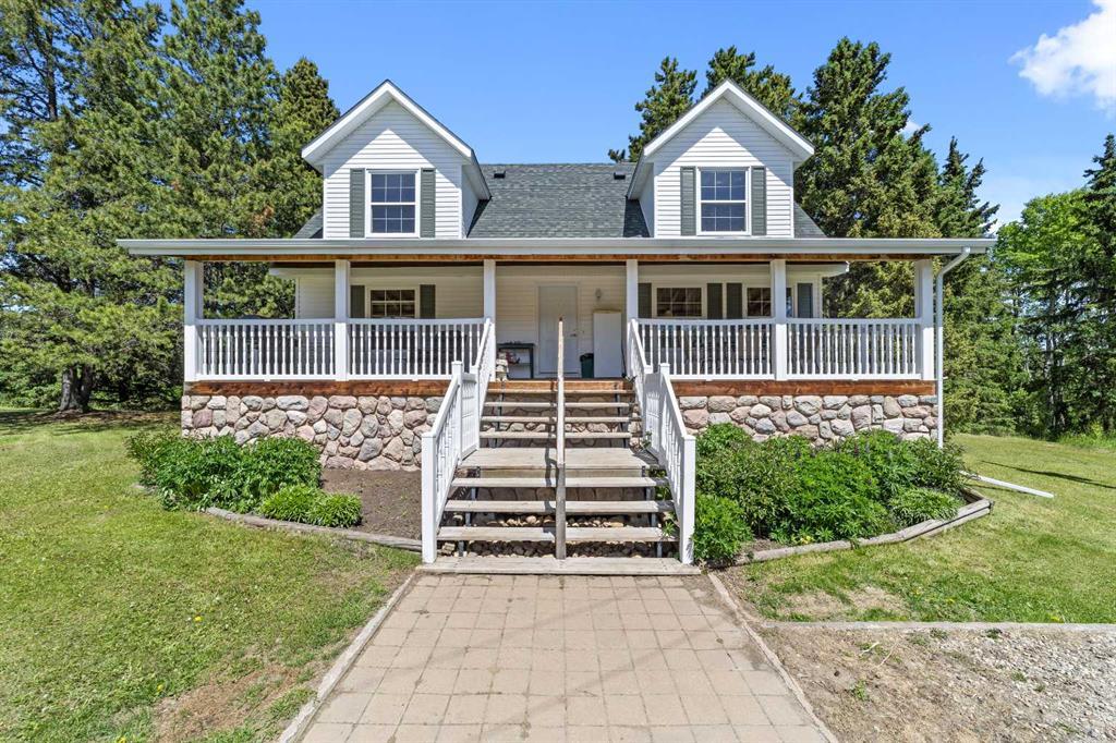 Welcome to this unique 4-acre property located in the scenic heart of Central Alberta, located 5 km off highway 54 between Village of Spruceview and the Village of Caroline. The property offers a 2 storey Cape Cod home with 10’x40’ covered veranda built 2004. Main floor has kitchen/eating, living room, 2 bedrooms, 4-piece bath, and laundry area. The open concept upper level is partially finished. The unfinished basement has roughed in infloor heat, 9’ ceilings, HE furnace(2023), HWT(2021), roof/shutters/siding(2023). Additional features of the property include; Berries offered: saskatoon, haskaps and raspberries (black, yellow & red), older complete self-contained kitchen trailer, 14’ x 18’ shop/storage (shingles 2023), 5’ x 14.5’ metal insulated shed, 10’ x 16’ shed (shingles 2021) with 12’ x 16’ lean to, 8’ x 12’ garden shed. Call today to view this beautiful property. Additional feature list can be obtained from your realtor which includes types of berries and other features of the property.