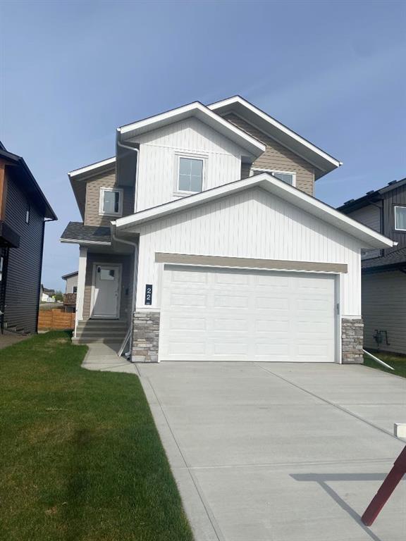 On an excellent quiet location in Blackfalds sits this brand new Abbey Platinum Master Built home with a legal basement suite. Abbey Platinum is an award winning prestigious builder. The home is a spacious 1800 sq foot fully finished 2 storey home with 3 bedrooms up and an upper bonus room. Excellent open floor plan with the stylish kitchen looking onto the great room and dining area. The dining area leads out to the deck and good sized yard. The upper level offers 3 bedrooms including the primary suite with a walk in closet and an ensuite. The large bonus/ flex room is the ideal space for a family room/ kids playroom/ exercise area or music room. There is laundry conveniently located on the upper level. Because it's a legally suited property you'll be able to use the basement income to qualify for the mortgage on this beautiful property. A new up to date suite should attract a quality tenant. The suite is an open style plan with a great room, kitchen, & 1 bedroom one bath. The home includes kitchen appliances both up and down and the suite has its own laundry area. Join the latest trend of wise home ownership with sweet monthly suite income.