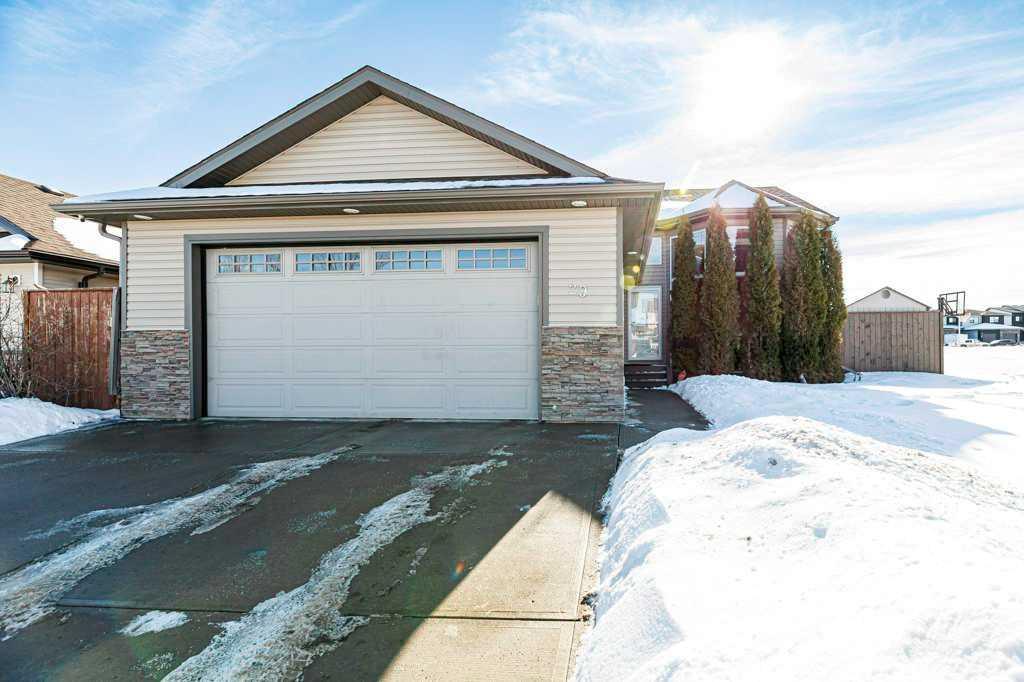 Welcome to this beautifully maintained 5-bedroom, 3-bathroom bi-level home, perfectly situated on a large lot in the heart of Blackfalds! Offering a bright and open floor plan, this home is designed for both comfort and functionality. The main floor features a spacious living room with large windows, flooding the space with natural light. The kitchen boasts ample cabinetry, a convenient island, and modern appliances, making meal prep a breeze. The dining area offers access to the backyard deck, perfect for summer BBQs and outdoor entertaining. The primary suite includes a private ensuite and plenty of closet space, while two additional bedrooms and a full bathroom complete the main level. Downstairs, you'll find a fully finished basement with a large family room, two more generously sized bedrooms, a third bathroom, and plenty of storage space. Located in a family-friendly neighborhood, this home is just steps away from walking paths, playgrounds, and local amenities. The expansive yard provides endless possibilities for gardening, play, or relaxation. And to add to your piece of mind the shingles were redone in September 2022!! Don’t miss your chance to own this fantastic home in an unbeatable location!