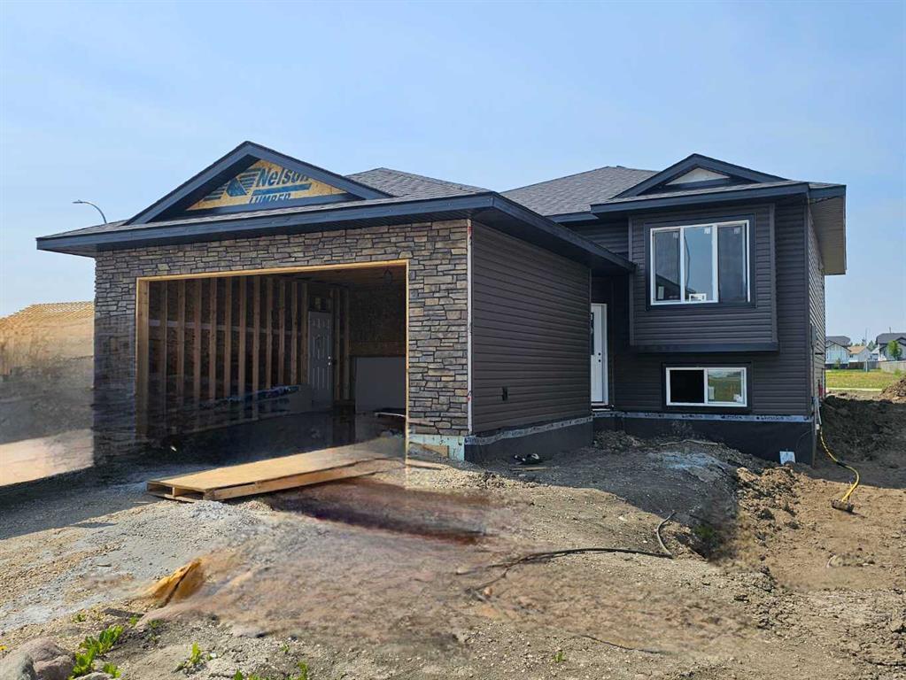 Welcome to this stunning bi-level home in Wembley, currently under construction and set for completion in late summer 2025! This beautiful property features an attached garage and sits on a spacious lot with a large backyard. The wide frontage allows for an RV parking pad in the front, adding extra convenience. Step inside to a welcoming entryway with ample storage. The main level boasts a stylish kitchen with elegant cabinetry and European countertops, a spacious dining area, and a comfortable family room—perfect for entertaining. The primary bedroom is generously sized, complete with a walk-in closet and a private ensuite. The basement is an open canvas, ready for your personal touch to create additional living space. Located just 12 minutes west of Grande Prairie, this home offers the perfect balance of peaceful living with city convenience. Currently at the framing stage, buyers with an accepted offer with all conditions removed early in the process can choose select finishes from builder samples. *Please note: Interior photos are sample images of the same floor plan built in 2024.*