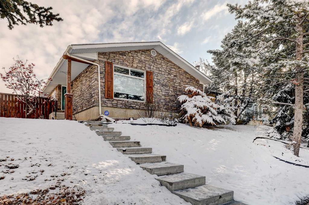 Location! Location! Location! This well kept and updated home is located on a big lot in the heart of Airdrie. The central location allows the kids to walk to school or you to walk for your weekly groceries! The home boasts 3 bedrooms, 2 baths and 2 great living/gathering spaces, along with a private yard, over sized garage and another pad for an RV or other toys. The home features a bright and cheery open concept with a large white kitchen, roomy dining area with deck access and a large bright living room. The spacious primary bedroom has updated flooring and closet doors and the secondary bedrooms also have newer flooring. The main floor bath has been updated with beautiful tile work from top to bottom and a newer vanity. The basement is mostly complete and only requires flooring to bring it all together. The exterior features wonderful stone siding that can stand up to any hail mother nature throws at it. Some of the updates include flooring, paint, some kitchen cabinets, stainless steel appliances, on demand hot water tank, upgraded furnace and Central A/C. There is a huge deck that runs along the side of the house with access via double french doors from the kitchen, perfect for gatherings and BBQ's.