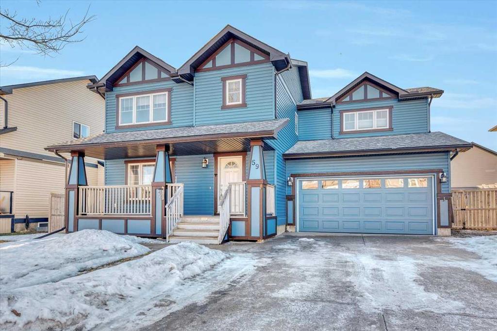 Welcome to 59 Brander Avenue! This beautiful home sits on a huge lot located on a quiet, family friendly street. It is less than a 10 minute walk to Langdon School (K-grade 8), also located on Brander Avenue. As you enter from the charming front porch you will immediately notice the newer vinyl plank flooring (Jan 2024) throughout the entire main floor, large windows with upgraded blinds, and a thoughtful floor plan for a growing family. From the spacious living room, you enter the kitchen and dining area. The kitchen offers optimal counter space, solid wood cabinetry, a walk-in pantry, an island for prepping, a 2 year old dishwasher, and a sunny south-facing window above the sink. Through the dining area is the main floor laundry and a powder room with a recently replaced vanity. Make your way into the double car, heated garage with 2 car access doors so you can pull through vehicles into the back yard. On the second floor are three very generously sized bedrooms, an office nook, the main bathroom and an ensuite. The primary bedroom is the perfect retreat that can fit a king-sized bed, and the ensuite is ideal space for relaxing in the deep soaker tub. The basement is roughed in for your future bathroom, has a newer hot water tank (2022), and 2 egress windows for the family needing an additional bedroom. From the kitchen you can access the back deck and massive yard through the new back door (2024). The south facing back yard is sure to impress with tons of space for kids and pets, a separate shed, and a sunken fire pit. This lot is over 8800 square feet! There is trailer storage, room for an RV or park up to 4 vehicles on the driveway. The shingles were replaced in 2021, and the exterior trim was repainted in 2024. Established homes here don't come up very often. With the new access onto Glenmore Trail from the northwest corner of Langdon, you can get to Stoney Trail at the edge of Calgary in about 15 minutes. Also noteworthy is the planned shopping plaza on the northwest corner of Langdon coming soon. Book your private viewing today!