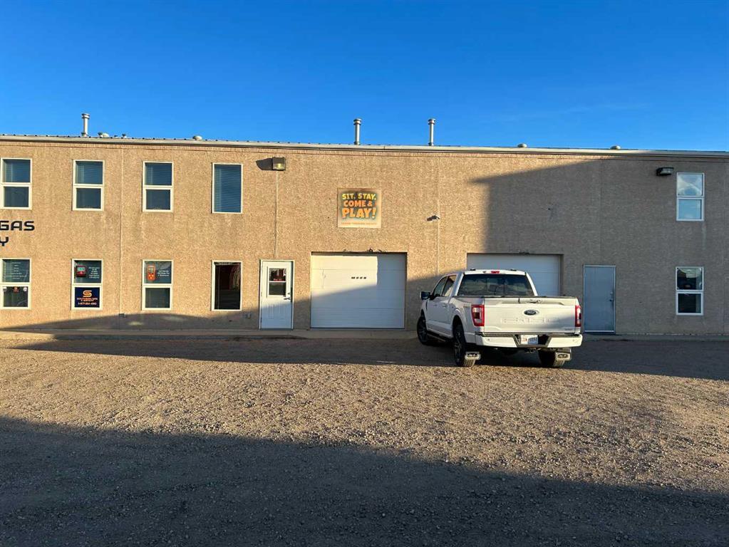 Industrial building with 7,700 sq ft footprint built in 2004. This building is strata titled, but currently owned by one owner. No condo board has been set up at this time. It features three bays, all with large overhead door in back and 2 back have overhead doors in the front. Stucco exterior and metal roof. Bay 1 is developed into store front and office with shop in back and 1242 sq ft of developed second floor. The middle bay is a drive thru bay, open space, small office and washroom. Bay 3 is wide open warehouse with large overhead door in back and smaller overhead door in front. Bay 1 & 2 have a shared fenced compound in back and bay 3 is partially fenced.