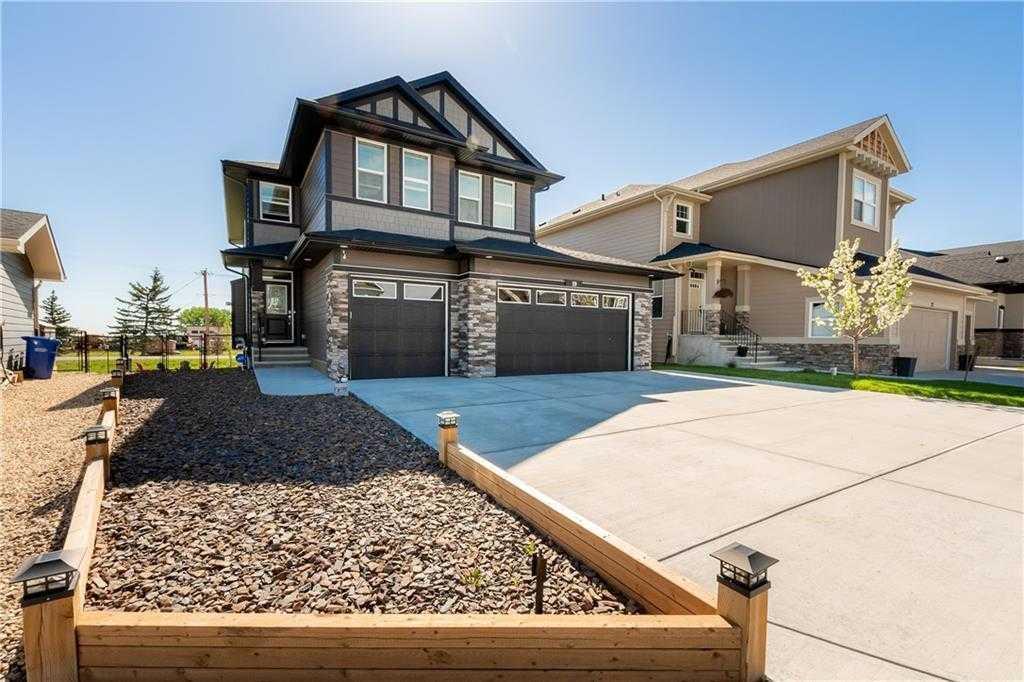 Discover this Sterling Homes meticulously designed and expertly maintained home in Air Ranch in Okotoks, offering 2,366 sq ft of thoughtfully laid-out living space. This residence sits on a bareland condo lot with low $110/month fees covering snow removal, professional management, and common area maintenance, blending low-maintenance living with the privacy and convenience of a detached home. A standout feature is the oversized 984 sq ft heated garage with epoxy flooring, floor drain, industrial sink, and 220V plug for electric vehicles or workshop use. The extra-wide, brushed concrete driveway accommodates a large RV or multiple vehicles. The backyard is a serene retreat with mature trees, decorative concrete edging, a fire pit area, and a spacious Duradeck-covered deck with a gas line hookup. Inside, the home boasts an inviting neutral color palette, high-end finishes, and smart design elements. The chef’s kitchen features an oversized island, rich cabinetry, soft-close drawers, granite countertops, and a butler’s pantry with pullout storage. Stainless steel appliances include a built-in Jenn-Air convection oven, Panasonic high-efficiency microwave, Whirlpool induction cooktop, Bosch dishwasher, and a Samsung French-door refrigerator with a beverage drawer. A Blanco sink with a garburator and a stylish stainless-steel faucet enhance functionality. The great room centers around a striking gas fireplace with floor-to-ceiling tile and built-in shelving. Large triple-pane windows flood the space with natural light, while Hunter Douglas blinds provide privacy. Upstairs, the well-planned layout includes a soundproofed bonus/media room with double doors, pre-wired for 5.1 surround sound, plus two generously sized secondary bedrooms with walk-in closets and partial mountain views. A five-piece Jack-and-Jill bathroom offers a separate toilet and shower area for added convenience. The luxurious primary suite is a private oasis with breathtaking views of rolling hills and treetops. The expansive walk-in closet leads directly into a well-appointed laundry room. The five-piece ensuite features double sinks, a granite-topped vanity, a large soaker tub, and a stunning tiled shower with rainfall and handheld showerheads. Additional highlights include central A/C, hot water recirculation, a Kinetico water softener, and a framed basement with large sunshine windows, offering endless customization potential. The exterior showcases low-maintenance Hardie siding, chain-link fencing, and integrated Gemstone lighting. The yard provides a secure dog run area with artificial turf, and access to the rear of the garage via man door. Situated in a prime Okotoks location, this home is close to shopping, restaurants, 3 beautiful golf courses, and scenic walking paths. Quick access to 48 Street and Highway 2 makes commuting a breeze. With its exceptional design, thoughtful upgrades, and unbeatable location, this home is a must-see. Book your private showing now!