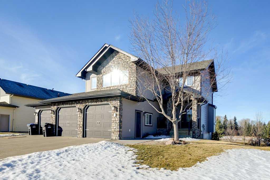 Located in the charming town of Sylvan Lake, this stunning 2,974 sq. ft. two-story home is nestled in the sought-after subdivision of Fieldstone, just minutes from the lake and golf courses. Boasting impressive curb appeal, the property features beautiful stone accents on the front of the house, a triple attached garage, and a stamped-edged driveway. Inside, the spacious kitchen is a chef’s dream, complete with maple cabinets, an 8-foot island , and a pantry all flowing seamlessly into the great room, where a striking stone-tiled fireplace creates a warm and inviting atmosphere. Arched windows at both the front and back, along with elegant archways throughout the home, and windows above the closet door and main floor bathroom add a touch of timeless charm. A deck off the great room offers a perfect vantage point to enjoy the backyard. Convenient main-floor laundry adds practicality. The upper level includes a spacious family room, along with three bedrooms, including a luxurious primary suite with a walk-in closet and 5 piece ensuite. The fully finished walk-out basement provides additional living space, featuring another family room, 3 piece bath and an extra bedroom. This exceptional home offers the perfect blend of style, space, and location!