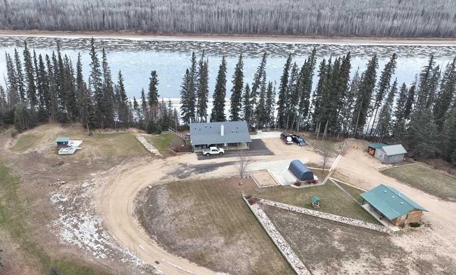 Once in a lifetime! Here is your opportunity to own right to the Athabasca River. Situated on 2.3 acres inside town limits, you will be able reap the benefits of spacious rural living with the convenience of being in town. Built in 2004, and just over 2,500 sq feet of living space, the home shows PRIDE OF OWNERSHIP! The main floor features a large entry way, a roomy kitchen with stainless steel appliances, including a gas range, well sized dining area just off the kitchen and a living room with gas fireplace overlooking the river. The primary bedroom is an oasis on its own with a large walk in closet, a 4 piece ensuite with corner tub and separate walk in shower, quick access to the laundry room and the bonus feature....a private door that takes you to the covered balcony facing the river. The lower level of the home is a walkout basement with two good sized bedrooms, multiple storage rooms and an expansive recreation room finished in beautiful wood accents on the walls and ceiling. Surrounding the home you will find poured concrete retaining walls creating a private courtyard feel in the back yard; plus there is a large concrete parking pad at the house too. With a covered deck on both the front and back of the house, you can create outside sitting areas that provide protection from the sun and rain. Finishing off the property a few accessory buildings outside; one for utilities and a couple more for all your tools & toys. Property is zoned C3.