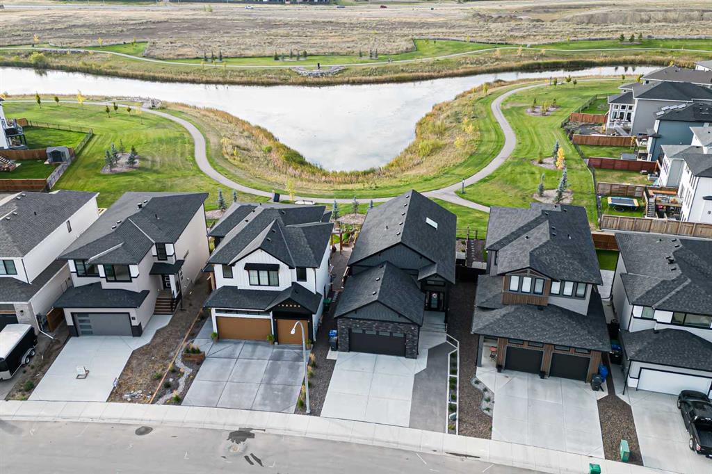 Welcome to your dream home situated on a beautiful SOUTH FACING LAKEFRONT lot in COUNTRY MEADOWS! This CUSTOM home was designed for empty nesters, retirees, professional or a family with older children offering your own space by solely housing your primary suite on the main floor with second and third bedrooms in the walkout basement (yes please)! This MODERN, OPEN-CONCEPT home is flooded with NATURAL LIGHT from the grand patio doors and abundant use of windows throughout. Upstairs offers the perfect blend of luxury and function starting with the chic, modern kitchen finished with quartz countertops, custom cabinet inserts, under cabinet lighting, high-end appliances (including induction cooktop and double wall oven with air fry and wifi capabilities!), plus built-in dining area adjacent to your stone faced fireplace with built-in cabinetry- all OVERLOOKING THE LAKE! Of course, your main floor also houses a stylish 2pc guest bath, your primary oasis with 5 pc ensuite and it's own laundry. While downstairs offers 2 bedrooms, 4pc bathroom, cozy fireplace, SECOND LAUNDRY and WALKOUT with wall to wall windows- there's that LAKE VIEW again! This basement set up works wonderfully for entertaining, hosting short or long term guests (teenagers and in-laws included) as well as the potential to rent it out and put some extra money in your pocket! Unwind by taking in THE VIEW, taking a STROLL AROUND THE LAKE, by cuddling up by the FIREPLACE (up or down) or fill that social calendar by hosting your guests to a summer bbq on your SPRAWLING upper OR covered lower DECK! This home offers ZERO MAINTENANCE landscaping with the beautiful, TRANQUIL PARK/POND backdrop giving you the best of both worlds- without the yard work! The HEATED GARAGE ensures your vehicles are always warm, dry and ready to go, plus extended driveway for additional parking. This home comes with TRIM LIGHTING in the FRONT & BACK- no more putting up or taking down Christmas lights! Now that's convenience! Speaking of, how opportune would it be to pick up the keys and move in? That's right- sellers are offering the option to buy this home FULLY FURNISHED! The EXTENSIVE LIST OF UPGRADES shows that no expense was spared when crafting this HIGH-END CUSTOM HOME. Some of the additional extras include: cabinet faced appliances, black window frames inside and out, hardwired mirrors with anti fog and lighting, vinyl plank flooring throughout (NO CARPET), quartz countertops, custom blinds, gated gravel side for dog run/storage, vinyl fencing, walk-in closets throughout, extra plug ins (for your stick vacuum!), 2 laundry spaces, all a testament to this homes thoughtful design! Ideally located close to a wide range of amenities and neighborhood playground this home is one to see!