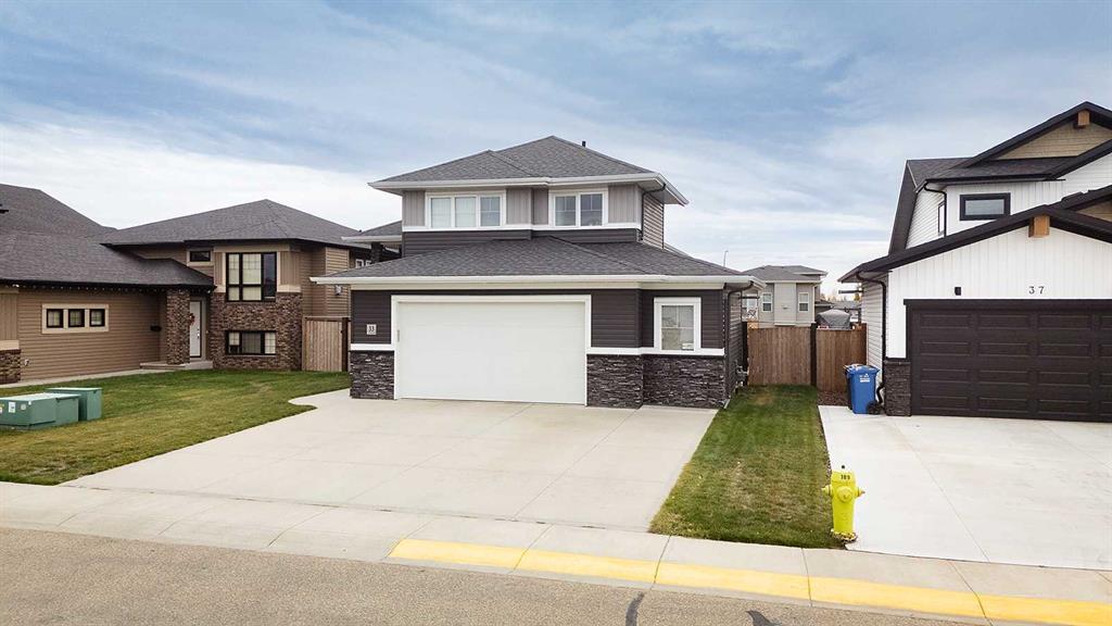 Welcome to 33 Arrowwood Close in Blackfalds! Aspen Lakes is a great neighborhood to reside in. Built in 2015, this one owner modified bi-level is fully developed with 3 bedrooms, 3 full bathrooms and has a walk out basement leading into the 6,396 sq ft fenced yard & has a 30 x 24 attached garage! The front entry is extremely spacious with a good-sized coat closet and tile flooring. Heading up the stairs you will notice the soaring vaulted ceiling, large island which overlooks the living room with a floor to ceiling tiled fireplace. The windows on the main floor also provide for a ton of natural light! The primary bedroom has plenty of room for your king-sized bed and the ensuite has a his/her sinks and a walk-in closet. The walkout basement has a wet bar, laundry room, bathroom, and bedroom. Enjoy a heated OVERSIZED double attached garage, A/C, in-floor heat in the basement, and a fully fenced yard with RV PARKING! Your new home is steps away from the trans Canada trail which goes all the way to Lacombe and is gorgeous year-round!