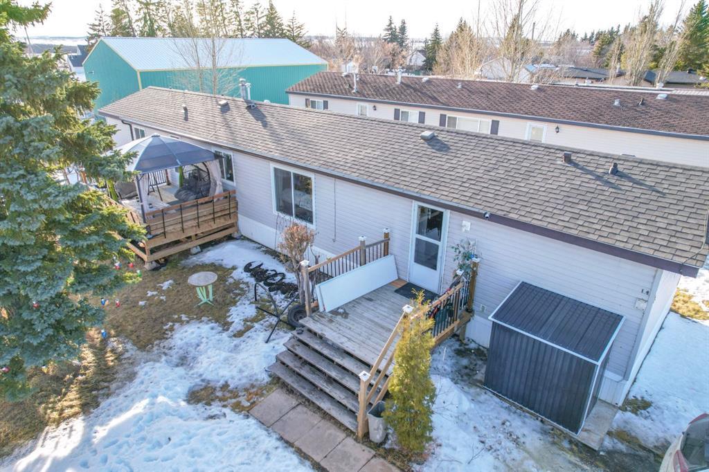 Alberta awaits in Joffre, a place of opportunity! At over 1200 square feet of home this 2002 Silverwood is an attractive open concept main living space. With a vaulted ceiling and big windows to flood the space with nice natural light, the living room and kitchen combo are a nice place to enjoy company, catch your favourite show, and compose culinary creations. The master resides beyond the kitchen and features a 4 piece ensuite in addition to a walk in closet. The laundry is conveniently placed next door to it and shares space with a pantry. Off to the other end of the home are two fun bedrooms and a four piece main bathroom. Outside we find a welcoming front deck into the main entrance of the home and at the back a new 16'X10' rear deck with built in seating! The shingles look great as they were just replaced in 2018, the furnace had a massive overhaul in 2019 and the water heater was replaced at the same time. In 2024 all new heat tape was installed to keep things flowing in the cold months and new eavestrough to keep the water away in the warm ones. The washer & dryer are brand new in '22, Dishwasher is just from 2023 and the fridge is a 2024.