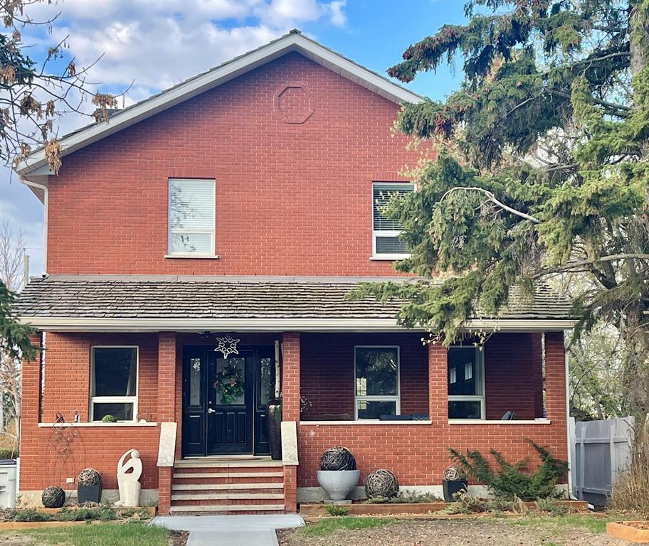 Situated on the west side of Wainwright between schools & close to the hospital. This 2 storey brick home was built in 1990 and is full of warmth & charm. Starting with the outside the veranda and tyndall stone steps lead you into the large front entry. The entry way leads you effortlessly into the living room featuring a tyndall stone fireplace and maple hardwood floors. Dining room offers garden doors onto an outside balcony, galley kitchen allows natural lighting through the glass brick finish below upper cabinets, granite countertops, 9’ coffered ceilings, ½ bath and a back entrance round out the main level. The charm continues as we head to the stairs leading to the 2nd level where you will be greeted by a heritage stained glass window. At the top of the stairs is a reading/work area, three bedrooms, 4pc Jack & Jill bathroom, with a soaker tub and a free standing shower. Basement is fully finished with a family room that offers built-in cabinetry, an additional bedroom plus ¾ bathroom. In-floor heating is offered on all 3 levels of this home.