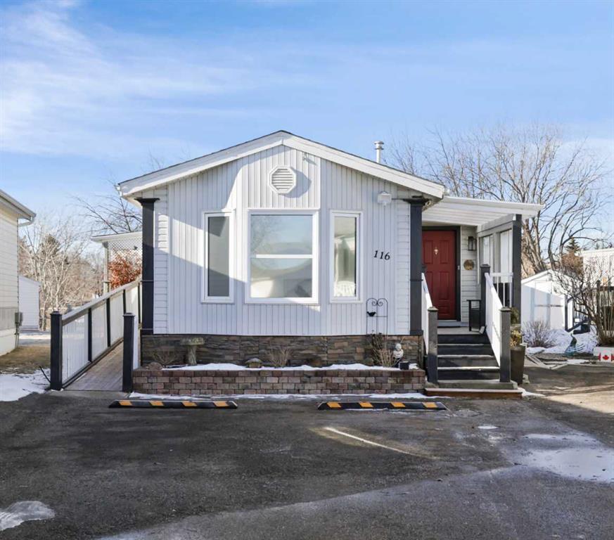 Welcome to 116 Ranchwood Lane in peaceful and well-maintained Ranch Estates, a 55+ community. This fully renovated 1,265 sq. ft. manufactured home offers 3 spacious bedrooms, 2 full bathrooms, and an open-concept design perfect for modern living. Every detail has been thoughtfully updated, from the fresh paint throughout, to the luxury vinyl plank flooring that adds both style and durability. The stunning kitchen remodel features updated cabinets, a stylish tile backsplash, and a premium sink, along with premium stainless appliances, open to the warm and welcoming dining and living spaces. The primary suite boasts a brand-new ensuite with a walk-in shower and seat, while the updated main 4-piece bath includes a new vanity. The large front facing bedroom offers space and flexibility, while the 3rd bedroom is perfect for guests or a home office/den.. Stay comfortable year-round with central AC, and enjoy outdoor living on the large covered deck. Need extra space? The large shed with power & an electric heater is perfect for storage or a workshop. Plus, the new roof (2023) adds to the home’s long-term value. Nestled in a secure, gated community with well-maintained grounds, friendly neighbours, and fantastic amenities, this home is just minutes from shopping (Walmart, Rona, Canadian Tire), recreational facilities (Rec Center, pool, rodeo grounds), and walking trails. If you’re looking for a move-in ready home with nothing left to do, this is the perfect opportunity. Don’t miss out – book your private tour today!