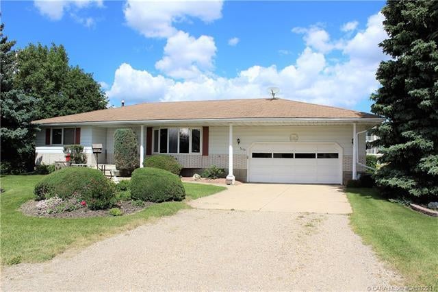 Family-sized home in Innisfail! Over 1150 sqft bungalow on the South end of Innisfail boasts location near schools and HWY 2. 3 bedrooms on the main floor with a full bathroom and a 2-piece ensuite off the good-sized master bedroom. "L-shaped" kitchen with built-in breakfast bar overlooking the large living room with bright South-facing picture window. Finished basement requires some updating but has a family room, bedroom, and office/den combo (closet, but no window). Large lot that measures 98x146, with access from neighbouring driveway. Oversized double garage is attached. Shingles have been replaced (less than 2 years old), and main floor windows and doors have also been updated over the years. Property is currently on a septic system but must be converted to town connection at the buyer's expense. Acreage-like living within the town limits.