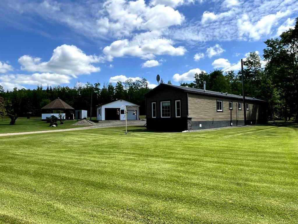 Welcome to your new home away from home...or permanent residence in the quaint cottage community of Fork Lake Estates. The 1152 sqft 3 bedroom, 2 bathroom mobile home has been extensively upgraded, well maintained, and is all set up for year-round enjoyment! An open main living area includes solid oak cabinets and island in the kitchen, spacious dining room and cozy sunken living room (15x15) with a gas stove! Plenty of room for guests in the two extra bedrooms and a large master suite includes a three piece bathroom. Added amenities inside include the newer washer and dryer. Sellers may also consider cabin furnishings! Outside you will enjoy the 40' covered deck with sunken hot tub and gas bbq hookup. Adding to the value of this amazing property are 2 garages: one is heated with stand up freezer, refrigerator and an air compressor. Enjoy the huge wired gazebo for a fire year-round! The property consists of two titled lots and all the landscaping, gardens, fruit trees and shrubs with privacy on three sides including municipal reserve behind. Over an acre of land with room for an extra RV or 2, or 3...! Just take a short walk and you're at the white-sandy beach or boat launch out to the open waters enjoying great fishing for pike and perch. Fork Lake Estates is located 98 km west of Cold Lake, 2.5 hour drive NE of Edmonton, as well as 2.5 hours NW from Lloydminster. If this is lake life, just bring yourself as everything else is here!