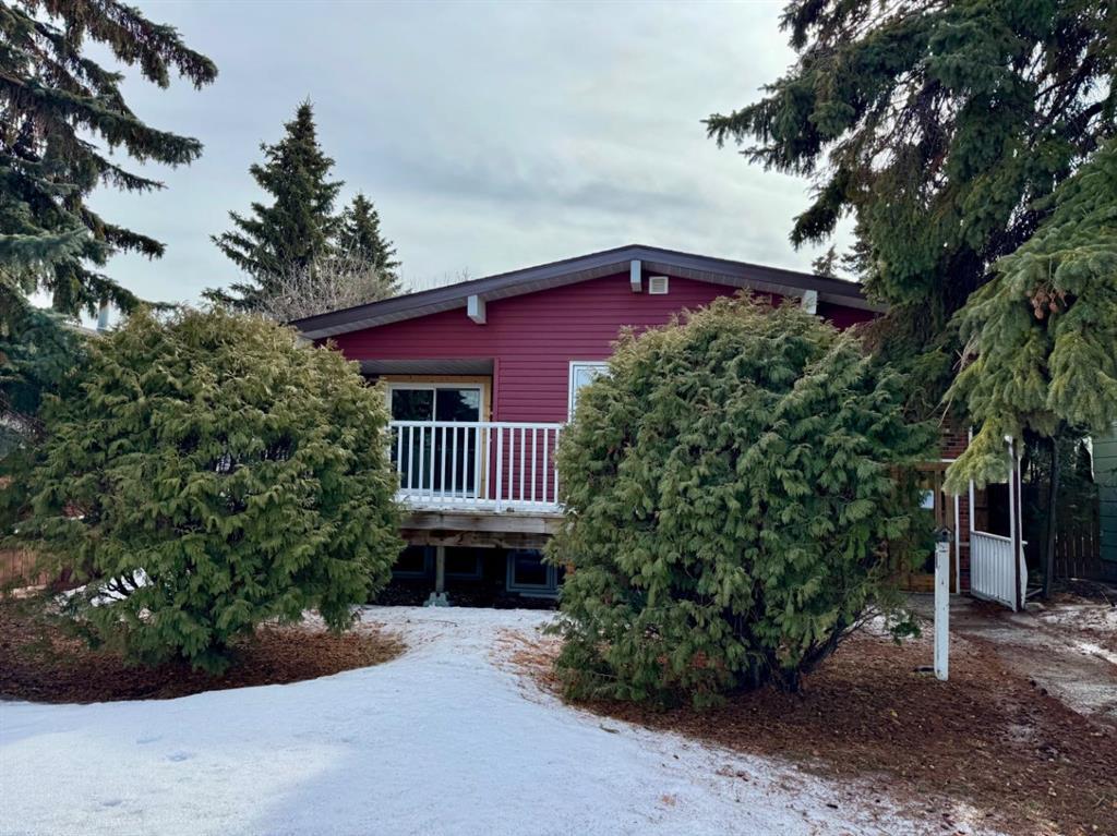 This spacious 3 bedroom family home is located in a quiet area of town, making it a great place to raise a family. Two decks provide plenty of space to relax on the weekend, and lots of trees offer shade and privacy. The detached 24' x 30' garage has lots of storage space and work bench area for your projects. Behind the garage you have a 35' x 24' parking pad, as well as a 24' x 17' parking pad. The yard also features a cement patio that's perfect for outdoor entertaining, a 6ft privacy fence and 2 sheds for your outdoor storage needs. As you enter this home through the decorative double doors you are greeted with a spacious entryway with wood accents and a vaulted ceiling. The living room boasts a large picture window that allows for plenty of natural light as well as the dining room has patio doors that lead to the 23'x8' front deck. The kitchen has ample space for all your cooking needs along with a formal dining area with french doors leading out to the 22' x 9' partially covered deck where you can enjoy barbequing and morning coffees. The primary bedroom is spacious with a 2pc ensuite and walk in closet. A second bedroom and a 4 pc bath complete the main level. Downstairs in the large family room you'll find a wet bar and a fireplace (decoration only) which makes this the perfect space for movie and game nights. You will find another large bedroom down the hall, a 3 pc bath and a laundry/utility room with storage cupboards. This home has multiple closets and storage space as well as plenty of large windows throughout for natural light. The walls are prepped for primer and ready for your favorite paint color. Its location close to schools, playgrounds and shopping adds convenience for families.