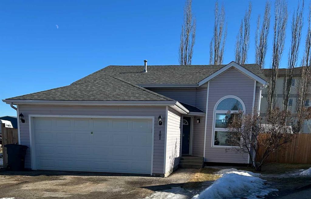 This family home exudes warmth and welcoming charm from the moment you step inside. The thoughtfully designed bi-level layout showcases soaring ceilings in the spacious front living area, which flows seamlessly into a generously proportioned dining space and a well-appointed eat-in kitchen. The main floor's design continues with two amply sized bedrooms, complemented by a convenient 4-piece bathroom. The master is complete with its own private 3-piece ensuite. The lower level features built-in shelving and abundant space for gatherings. A versatile third bedroom and an additional bathroom make this level perfect for guests or family members. Recent upgrades enhance this home's appeal, including energy-efficient windows, a sturdy fence with convenient back alley access through a large gate, asphalt singles replaced in the last 4 years, complete kitchen upgrade, custom blinds, a practical garage heater and renovated basement recreation room and bathroom. The outdoor space is equally impressive, boasting a expansive deck perfect for summer entertaining, alongside a well-maintained yard featuring mature trees and fully fenced yard. Situated in a peaceful, family-oriented cul-de-sac, this property truly offers everything a family could desire!