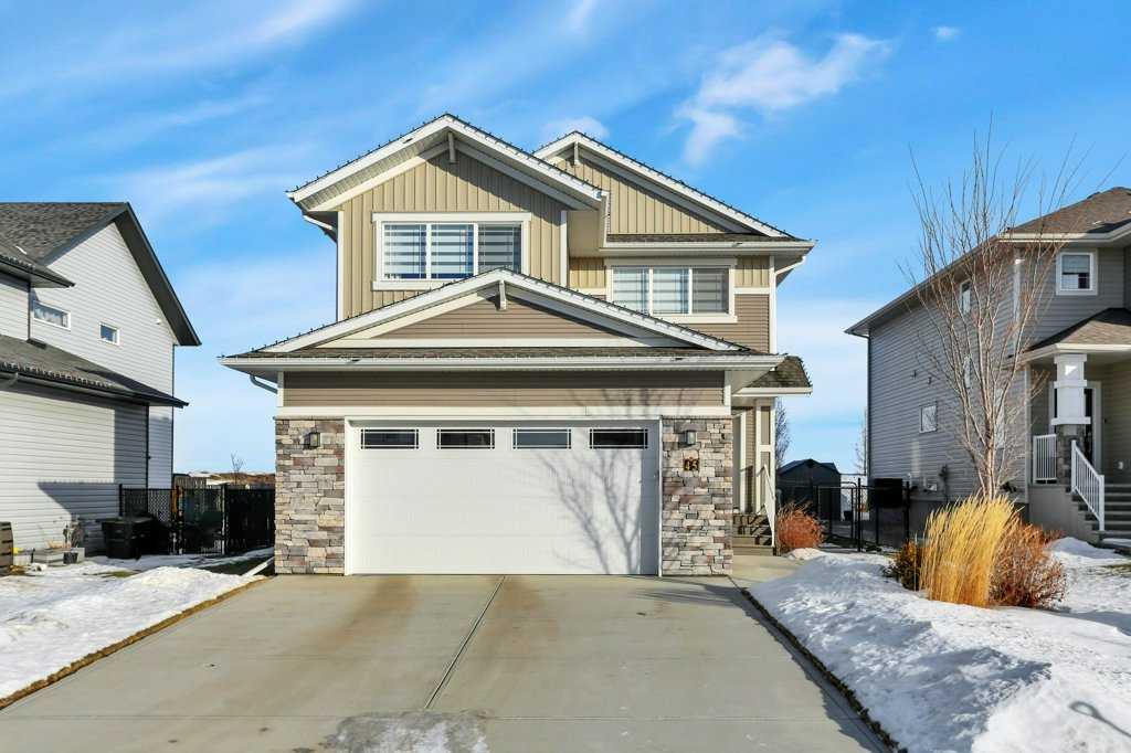 FORMER SHOWHOME IN TRINITY CROSSING BACKING ONTO GREEN SPACE! This well maintained four bedroom, four bathroom home has been planned with thought and care with all the details to be move in ready. Step into the spacious front entrance that leads into the open main floor living area which offers large windows, a neutral color palette and vinyl plank flooring throughout. The bright kitchen is a classic design timeless white ceiling height soft close cabinetry, stainless appliances, quartz countertops, corner pantry, and a center island overlooking the living and dining space. The living and dining area is bright and has sliding garden doors to the rear yard. Two piece guest bathroom and mudroom complete the main level. Upstairs the primary bedroom is a great size and has a stunning spa like en-suite bathroom with walk in closet. There are two more bedrooms, a four piece bathroom, laundry and a comfortable bonus room great for cozy family time. Downstairs the developed basement offers a large family room, fourth bedroom, four piece bathroom, storage and utility room. Outside you'll love spending time in the fully fenced and landscaped yard which overlooks a quiet green belt. With gas on the deck for the BBQ, concrete sidewalk, concrete curbing and a storage shed this yard is ready for you to just kick back and enjoy. The finished heated garage has room for two vehicles along with additional storage with the convenient Canadian Closet adjustable shelving unit. Other extras include quartz counter tops throughout, zebra blinds, central AC and central vac. Located in a quiet cul-de-sac with excellent neighbors this house is the perfect place to call home!