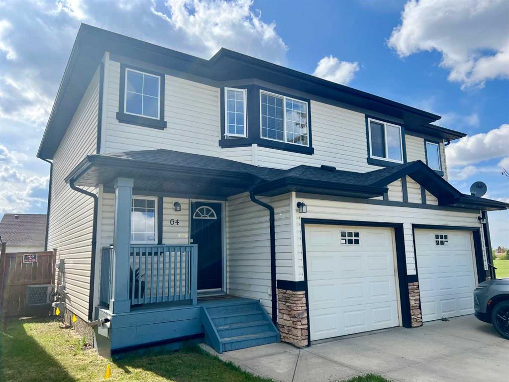 Located in the beautiful Anders sub division this nicely kept duplex would make for a great first time buy or addition to an investment portfolio. This home is all within walking distance to schools, shopping, parks and recreation which is a much desired feature of this property. A covered East facing front patio greets you on the way inside perfect for enjoying the morning on. Follow inside to the open main floor concept which boasts is plenty of natural light to pour in. The functional kitchen offers all bright white cabinets, deep corner pantry, large center island plus all updated appliances. Living space overlooks dining area with direct access out to the yard. Convenient two piece bath on main with new pedestal sink. Upstairs offers the twin Primary Bedroom plan with two large rooms each with their own private en suite plus one room even offers two walk in closets. The fully finished basement is complete with a large family room ideal for games area or media space with speakers in ceiling for audio plus a finished laundry room. Single attached garage is great for vehicle storage and seasonal protection. Get ready for the warm summer and spend it out in the large West facing yard with room for trampoline or sit and relax on the aggregate patio.