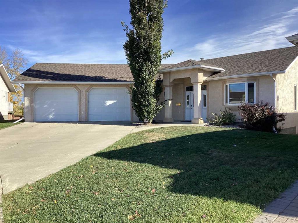 Situated in a peaceful little town of Trochu, Alberta, this well crafted executive bungalow with a WALKOUT BASEMENT is a perfect fit for families and empty nesters alike looking for affordability and all the comforts and conveniences of small prairie town Alberta living. Featuring 3 bedrooms, 2 1/2 bathrooms, and spacious living areas on the main and basement levels, a walk out basement, and an oversized double garage. This beautiful home includes a generous master suite with walk-in closet and a large ensuite with a shower and jetted tub. On the main floor, you will immediately notice the natural light streaming in through the windows of the open concept kitchen, living, and dining area. This inviting space showcases a gas fireplace that is icing on the cake for this fantastic entertaining area. The well-equipped kitchen has an abundance of counter space and storage, and the dining area leads out to a large east facing deck for more space to entertain during the warmer months of the year. The fully finished basement with in floor heating offers a large room perfect for a family entertain space, a second and third bedroom, and an alternate laundry setup with plenty of storage in the furnace room. Rounding out the basement is a large bathroom with shower. The garage is heated and offers an exhaust fan, a sink, cupboards, and a 220 plug. Outside is a large backyard with covered rear patio and plenty of space for kids or pets and a spacious patio area, 12X 16 storage shed , and an RV parking area large enough to park 3 units.