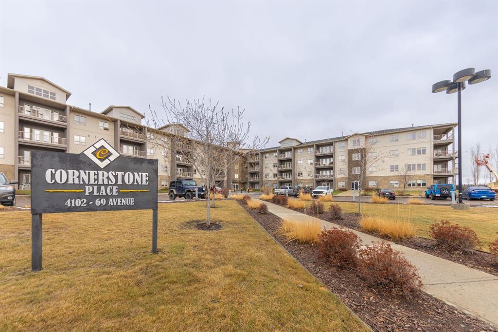 Welcome to Cornerstone! This immaculate 2 bedroom 2 bathroom first floor unit is sure to impress the minute you step inside. Open concept living with recent renovations including new countertop and black splash, new vinyl flooring throughout living room area and bedrooms as well as a brand new washer & dryer. The master bedroom features double closets and a full 4 piece bathroom. This beautiful building boasts an owners lounge, exercise room, guest suite as well as underground parking. This unit comes with 1 underground stall and 1 surface stall. Make your move to luxury today!