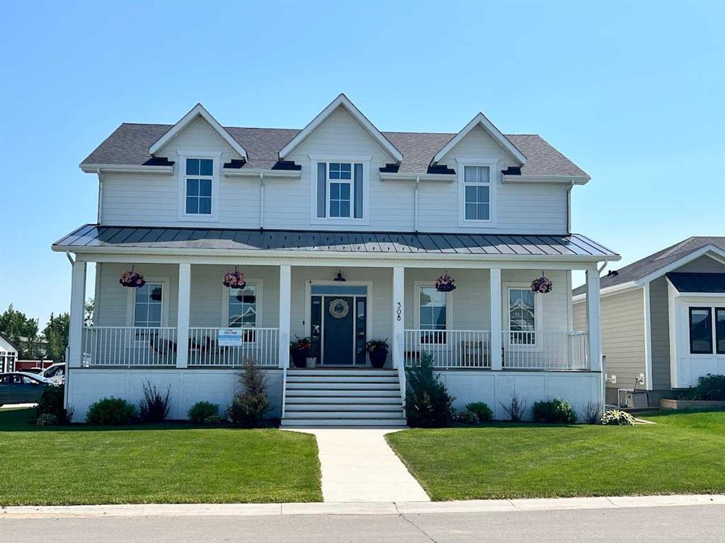 Come explore this exquisite 2-storey home in the desirable Bridge Crossing subdivision of Raymond—just a quick 25-minute drive from Lethbridge. Ideally situated only a few blocks from local schools and the Raymond public outdoor swimming pool, this location offers the perfect balance of community charm and convenient access to amenities. Boasting 2,745 sq. ft. of beautifully finished space, this home is thoughtfully designed for both luxury and functionality. Main floor highlights - Stunning custom-built kitchen with stainless steel appliances, quartz countertops, a large island, stove with pot filler, and a spacious walk-in pantry. Soaring 18-foot vaulted ceilings in the living room with a cozy gas fireplace. Front office/bedroom, ideal for remote work or guests. Convenient half bath and a mudroom with direct access to the heated double garage—featuring an EV charging station. Second level boasts Master suite with walk-in closet and luxurious 5-piece ensuite: dual sinks, soaker tub, and a steam shower. Two additional generously sized bedrooms. 5-piece main bathroom and a spacious laundry room complete with a sink. Basement is fully developed featuring expansive game/media room with a mini bar—perfect for entertaining. Two large bedrooms and a 5-piece bathroom and secondary laundry facilities for added convenience. Additional features include built-in sound system throughout the home: living room, rec room, master suite, garage, deck, and even the kitchen. Central air conditioning for year-round comfort and Gemstone LED lighting package wrapping the exterior. You will love the fully landscaped low-maintenance yard with vinyl fencing. Covered back deck and paving stone patio with a custom-built gas fire pit—perfect for entertaining family and friends. Round cement pad ideal for a future pool or additional fire feature and Underground sprinklers and drip system servicing the garden beds, flower boxes, and trees. Whether you’re looking for luxury, functionality, or a serene place to call home, 308 Church Avenue delivers on all fronts. Don’t miss your chance to own this incredible property.