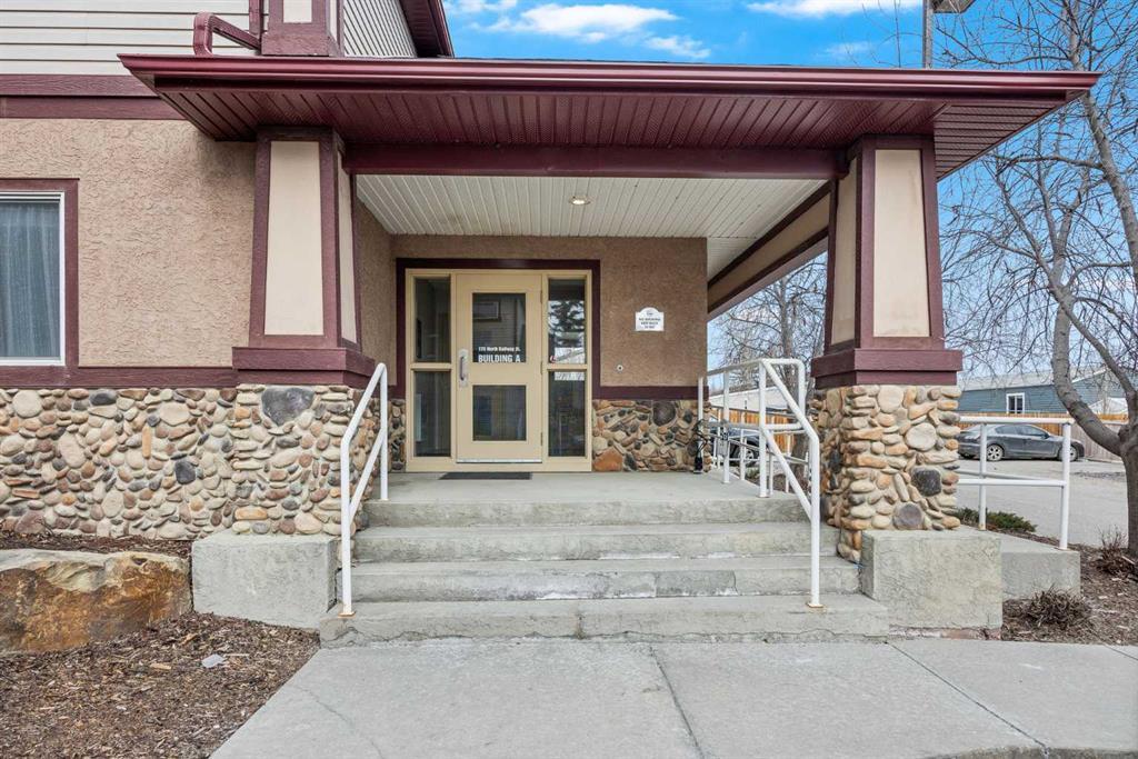 Welcome to this charming and sun-filled 2-bedroom end unit with a south-facing patio, ideally located just minutes from downtown Okotoks. This well-maintained apartment features updated vinyl plank flooring throughout, neutral décor, abundant natural light, and scenic greenspace views. Inside, you'll find a spacious living room with sliding patio doors leading to a covered south-facing patio—the perfect spot for relaxing or enjoying a BBQ. The bright kitchen features crisp white cabinetry, ample counter space, a large island, and matching white appliances. The generous dining area provides a cozy space for family meals while overlooking the greenspace. Both large bedrooms include double closets, offering plenty of storage. The unit is complete with a 4-piece bathroom and an impressively sized 14'7" x 10'9" storage room. Additional features include updated vinyl plank flooring throughout, an assigned parking stall with plug-in, coin laundry, and a pet-friendly policy. Enjoy the convenience of being just a short walk from the river, walking paths, and shopping. This move-in-ready unit won’t last long—book your viewing today!