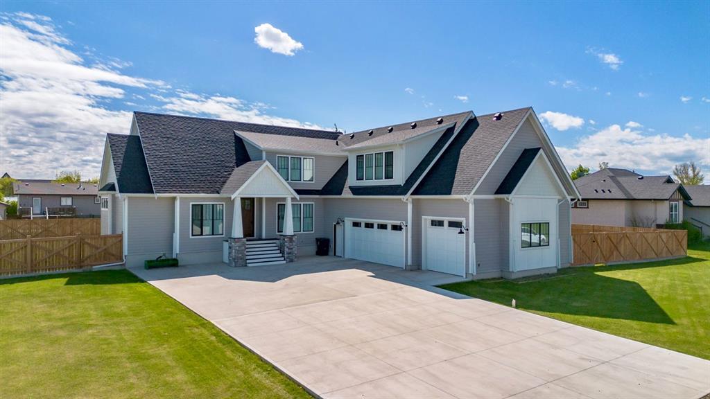 BEAUTIFUL TWO STOREY SPLIT HOME IN THE VILLAGE OF STIRLING! This 2017 custom built 2 storey split home with triple car garage featuring more than 4400 square feet of developed interior space sits on a half acre of land and is fully fenced and landscaped with underground sprinklers, double gate access for RV or large vehicle, and an outdoor basketball court! Sellers are even including the zero turn lawn mower! Inside, you'll find a fantastic open plan with laminate flooring on main and high vaulted ceilings! Main floor features living room with floor to ceiling brick surround of the natural gas fireplace and large windows that adorn the rear of the home. Gourmet Kitchen has a beautiful design and features quartz counters & stainless steel appliances including a large built-in gas range. There is also a huge island with apron sink and a large pantry with upright freezer included! Dining room has sliding glass doors to covered deck out back. East facing backyard has house blocking the west wind so you can actually enjoy your deck! Main floor also has primary bedroom with fantastically appointed 5 piece ensuite that features separate soaker tub and tiled shower. Walk-in closet has the perfect set up for all your clothes and shoes. Entry to triple car heated garage is also on the main and there is a mud room with 4 large cubby lockers for all your gear. Laundry room is also on the main and washer & dryer are included. Main floor also features an office just off the entry with sliding barn door. In-ceiling speakers are throughout this home and are part of the control 4 system that operates all the audio & video equipment. Upper level has a nice size bonus/family room, 2 bedrooms with custom built-ins, a jack and jill 4 piece ensuite in between, and a storage/play room. There is even a secondary office area on the landing that would be perfect for home work stations. Basement is fully developed with large family room with true theatre surround sound from THX certified speakers. There is also a separate theatre room for movie nights with 9.2 channel THX certified surround and a Panasonic HD projector! Basement also has a 4th bedroom, a proper gym with rubber flooring & mirrors, and a 3 piece bath with tiled shower! OVER $100K IN A/V EQUIPMENT INCLUDED WITH THIS HOME INCLUDING ALL THE TV'S!...The 40x28 heated garage even includes a tiled dog wash station for the family pet! Home has conveniences of central a/c, central vac, dual zone furnace, & tankless hot water. This might just be the ultimate family home to enjoy in the village of Stirling just 20 minutes away from Lethbridge on divided highway. Call your favourite Realtor to view!
