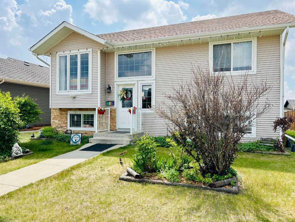 PRICED TO SELL!!! BEAUTIFUL 4 BEDS, 3 BATHS FULLY FINISHED BI-LEVEL WITH A HUGE DOUBLE DETACHED GARAGE & FACING A PARK, THIS IS A MUST-SEE! Nestled in the highly sought-after, family-friendly neighborhood of PANORAMA ESTATES, this beautiful TRUE LINE build 4-bedroom, 3-bathroom home is sure to impress. Offering a spacious and open-concept main floor, this home exudes warmth and charm, making it the perfect space for your family to grow. The bright and inviting LIVING ROOM features a cozy GAS FIREPLACE, creating the ideal spot for relaxation. The adjacent DINING AREA provides ample space for family meals, while the spacious KITCHEN is a chef's dream, with plenty of cabinetry, stainless steel appliances, ( the fridge & dishwasher were recently purchased and the stove has an air fryer option. bread proof and a grill top option), an ISLAND with drawers and a glass cabinet and a convenient pantry. On the main floor, you'll also find the generously-sized MASTER BEDROOM, complete with a walk-in closet and a private 3-piece en-Suite for your ultimate comfort. An additional 4-piece BATHROOM with a JETTED TUB ,another spacious BEDROOM, the LAUNDRY AREA & a LINEN CLOSET round out this level, providing everything you need for convenience and comfort. Large windows throughout allow an abundance of natural light to flood the home, making every room feel bright and welcoming. The FULLY FINISHED BASEMENT is the perfect space for entertaining or relaxation. It features a spacious FAMILY ROOM, 2 additional BEDROOMS, and another 4-piece BATHROOM with a large closet. There is also a linen closet. One of the bedrooms is roughed in for a KITCHENETTE—the stove is already installed, and the sink will be added shortly. The basement also includes a mechanical room and under-the-stairs storage. There is also roughed in vacuum. Step outside to your PARTIALLY FENCED BACKYARD which is FULLY LANDSCAPED & it includes a really nice DECK, a large DOUBLE DETACHED GARAGE, RV PARKING, and a SHED—perfect for storing all your outdoor gear. There's also a back lane & worth mentioning is the fact that the shingles on the house ( not the garage) were replaced last year ( October) Ideally located near all the amenities you could need in Blackfalds, including the Abbey Centre, the Blackfalds Community Centre, and several schools such as Iron Ridge (Elementary, Intermediate & Junior) Campus and St. Gregory the Great Catholic School, this home is also just across from Pine Crescent Park, which features a large open green space, a playground, the Pine Crescent Community Garden, a skateboard park, and an outdoor ice rink—making it the perfect spot for family outings. Recent upgrades include NEW SIDING & EAVESTHROUGHS ON THE GARAGE & NEW RAILINGS ON THE DECK. This is truly the perfect family home—ready for you to move in, enjoy, and make it your own! Don’t miss out on this incredible opportunity!