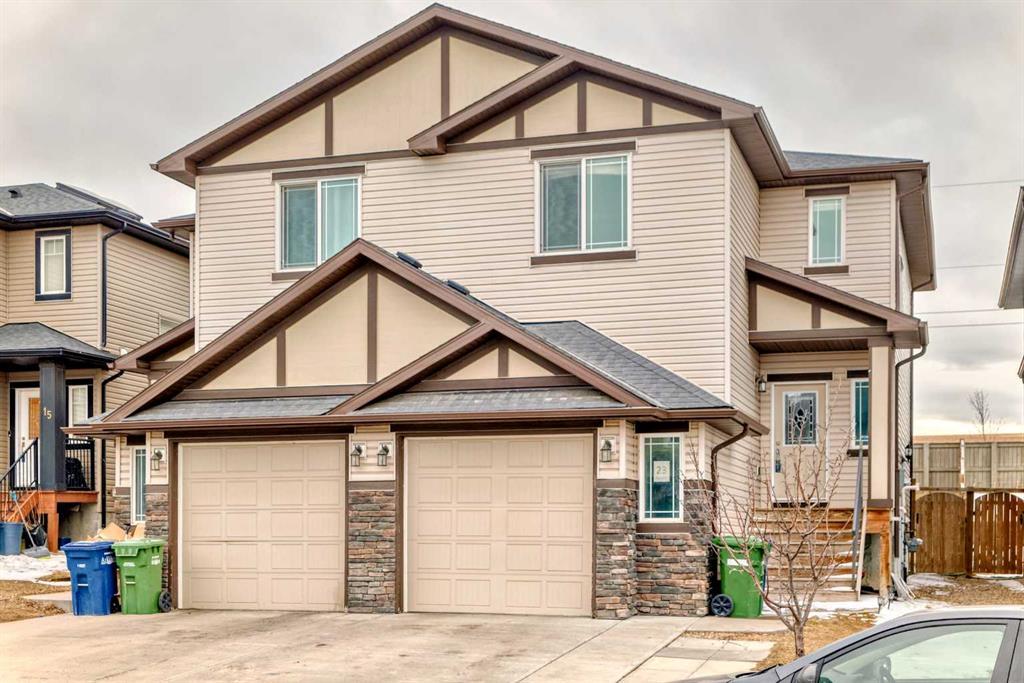 Welcome to Baysprings Way! This 1600+ sq. ft. attached home boasts an open layout, front attached garage, large yard and separate side entrance for the basement. The main floor features a spacious front entry, 9ft ceilings, wide plank laminate flooring throughout, family room with gas fireplace and kitchen with modern cabinetry, quartz counter tops, stainless steel appliances, island with raised eating bar, corner pantry and eating area. The powder room and “flex room” (perfect for a home office, kids play area or dining room) complete the main level. Upstairs includes the large primary bedroom with vaulted ceilings, walk in closet, ensuite with soaker tub and separate shower, 2 additional bedrooms, the main bathroom, laundry room and a central bonus room. The undeveloped basement has a separate side entrance (ideal for a separate suite subject to approval and permitting by the city) and has 2 good sized windows. The West backyard is huge, private and has a deck. Located on a quiet street and close to schools, parks and all of the amenities that Airdrie has to offer!