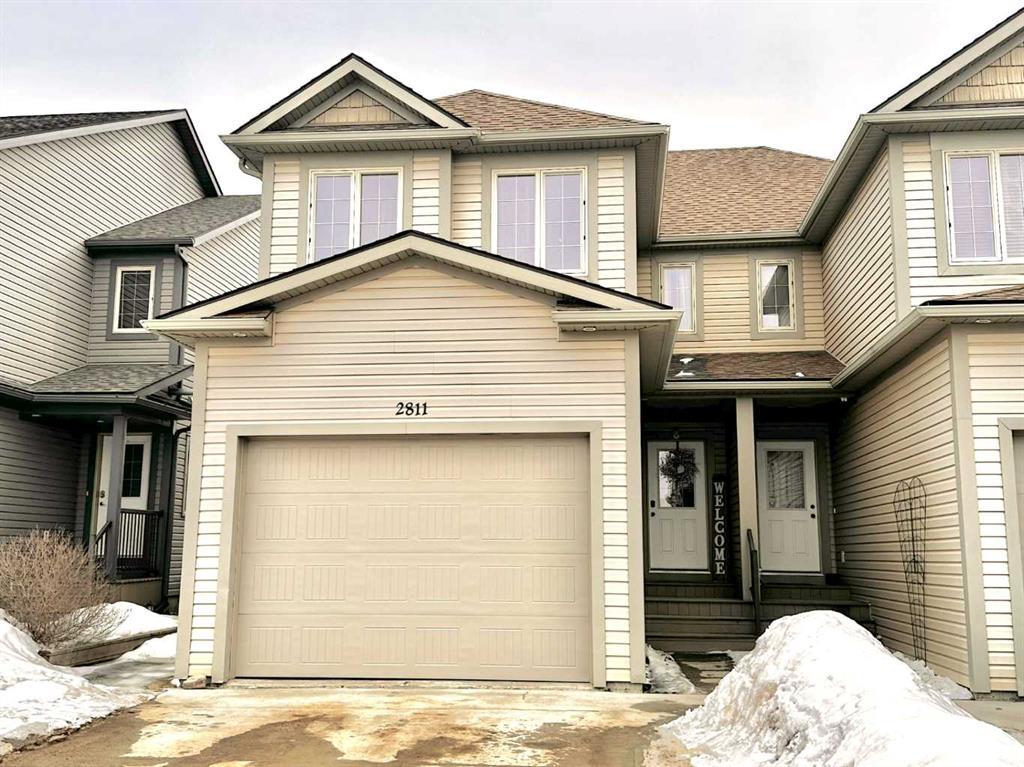 Unique semi-detached 2-storey! Walk up to a maintenance free front porch providing great curb appeal. Main floor showcases Kitchen w/ ample cabinets, walk through pantry, living room & dining room offering direct access to your deck, ideal for BBQing, and 2pc. powder room off the attached heated garage. Upstairs you will find 3 bedrooms. Primary bedroom with grand double doors is plenty large for a king size bed & is complete with huge walk through closet into the 5pc bath w/soaker tub, 2nd floor laundry and a nook/computer area. Basement is complete with family room and additional 4pc bath. Additional features include: A/C, central-vac & water softener. Located on the east end of Wainwright, in desirable subdivision close to shopping amenities and walking trails!