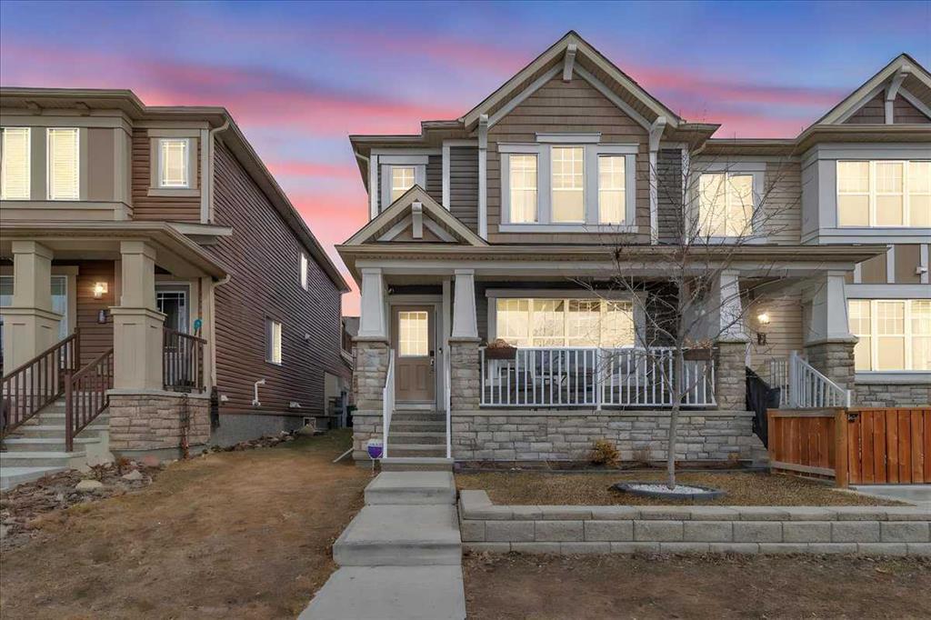 Welcome to this beautiful, fully automated end-unit with central air conditioning and a double attached garage—NO CONDO FEES! From the moment you arrive, you'll appreciate the fantastic curb appeal, featuring a charming South-facing covered porch and a beautifully landscaped front lawn with a stone retaining wall. Step inside, and you’ll be amazed at how immaculate the home is—it's hard to believe it's even been lived in! The open-concept main floor boasts low-maintenance laminate flooring throughout, with a spacious living room, dining area, and a kitchen equipped with elegant quartz countertops and an eating bar. Upstairs, you’ll find a large, cozy bonus room with a gas fireplace, perfect for relaxing or entertaining. The primary bedroom is a true retreat, complete with an ensuite bathroom and a walk-in closet. Another generously sized bedroom and a stylish four-piece bathroom round out this level. Plus, you can access the expansive balcony/deck that sits atop the garage, ideal for enjoying the outdoors. The upstairs flooring is also durable laminate, making maintenance a breeze. Throughout the home, the builder-grade light fixtures have been replaced with energy-efficient LED fixtures. This home is equipped with top-of-the-line automation, offering features such as voice-activated lighting, a smart garage door, a smart thermostat, smart door locks, and a SkyBell video doorbell. It integrates seamlessly with Google Home for ultimate convenience and control. There are schools nearby, parks, shopping and quick access to Highway 2 if you're commuting to Calgary. Come see this exceptional property for yourself during a private viewing. Don’t miss out on this incredible opportunity!