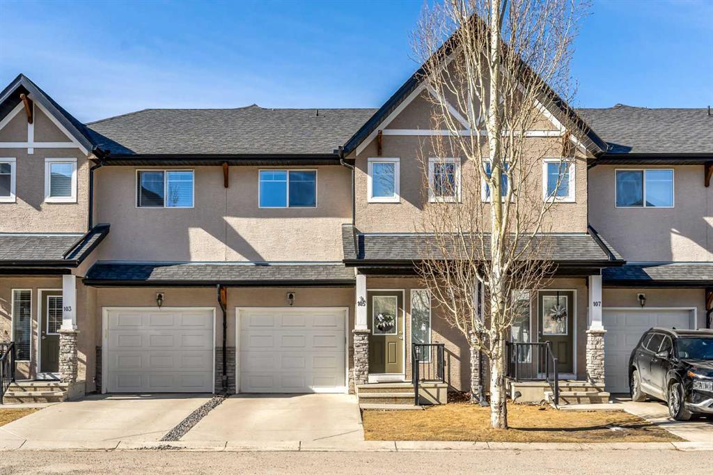 A little bit country – a little bit city. This beautiful townhome located in Cimarron Vista, Okotoks gives you a taste of the serenity of country living but still affords handy access to big city amenities. Featuring 3 bedrooms and 2.5 bathrooms across 1,298 sq. ft., this west-facing home includes a single attached garage and a spacious driveway that accommodates two vehicles. The main floor, with its open area design, presents as roomy and bright with high ceilings and vinyl, wide-plank flooring throughout. Large windows in the spacious living room and dining nook present a lovely view of the great outdoors and access to a railed back deck for increased entertainment space. Clean white cabinets, sleek stone countertops, a breakfast bar/island with double sink and black appliances grace the kitchen. A 2-pc bath completes this level. The carpeted second floor showcases a bright, airy primary bedroom with the added benefits of a walk-in closet and 4-pc ensuite. Two additional bedrooms share a second 4-pc bath. For added expediency, a laundry room is in the hallway and a railed balcony adds one more prize to this home’s appeal. The basement is undeveloped so gives you an opportunity to exercise your imagination for future prospects. Please note newer furnace, washer and deck! To add to the pluses already listed, this complex is professionally managed with common area maintenance, care of the grounds and snow removal. Close to major thoroughfares such as Highways 2, 2A and 7 and Cimarron Boulevard it’s easy to access both the surrounding countryside and city conveniences such as the local Costco, Home Depot, Walmart, Winners and Save-on Foods to name a few. Also close to schools, churches, the Sheep River and Woodgrove Park. This home is clean, well-cared for and ready for its new owners. Could that be you? Call today and schedule your personal tour. You will not be disappointed.
