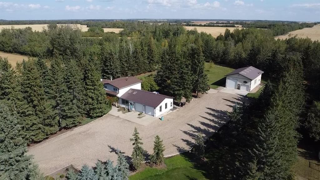 Discover your dream home just east of Fairview on 7.76 picturesque acres! This spacious 4-bedroom, 3-bathroom residence features a finished double car garage and a massive 30 x 50 shop with concrete floor.. Separating the home and garage is a fully enclosed 3 season sun room. The home boasts two large living rooms perfect for entertaining, a well-equipped kitchen, and a dining room that could comfortably fit a 6-8 person dining table. Convenience is key with main-level laundry and a large spare bedroom for guests. Upstairs, you'll find three more bedrooms, including the master suite with an 3 piece ensuite. Along with the other 2 bedrooms upstairs will be the 4 piece bathroom. The partially finished basement offers ample storage and a great space for kids and grandkids to play. Enjoy the amazing yard with a private entrance, large garden, and beautiful back patio. Explore the many walking trails for endless outdoor adventures right at home. Don’t miss this perfect blend of comfort and country living!