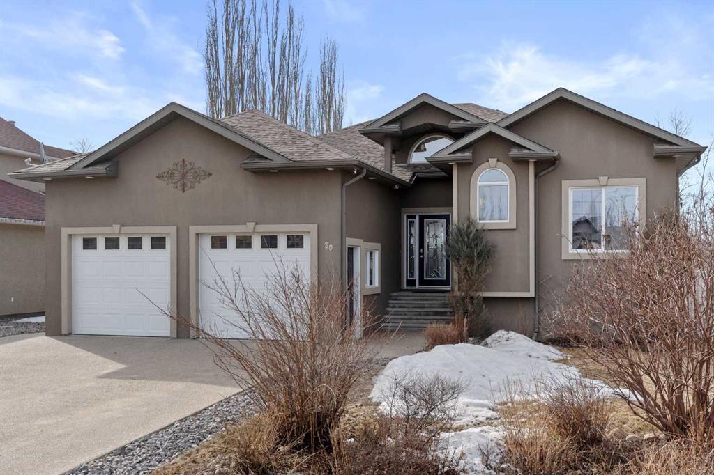 Located on Poplar Drive, this bungalow offers privacy with no neighbors behind and a vinyl-fenced backyard. The large entryway leads into an open-concept living room, kitchen, and dining area with tall tray ceilings. The kitchen features an island, ceramic tile, a breakfast bar, and a corner pantry. Hardwood flooring in the living room and dining area plus central air conditioning throughout. Walk out to the beautiful backyard, which faces west, and enjoy the maintenance-free covered deck, with gardens for growing vegetables and flowers. The primary bedroom faces the backyard and includes an ensuite with a corner jetted tub, a two-person stand-up shower, a water closet, dual sinks, and ample counter space. A walk-in closet is attached. Three bedrooms are on the main level, with three more downstairs. The basement has tall ceilings, a large family room, and a dedicated laundry room. A separate utility room houses a new boiler (installed in 2022) for in-floor heating in the basement and garage. Two hot water tanks provide consistent hot water. The garage is heated and attached. It is 24' wide and 26' deep. Super clean and organized with vinyl floors. The property includes an exposed aggregate driveway and sidewalks, and side parking. Located near parks, the golf course, and schools.