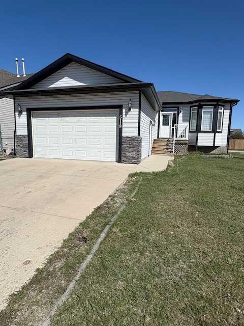 Welcome to this well-kept 4-bedroom, 3-bathroom home, thoughtfully designed with functionality, in a quiet area of Olds. The main floor boasts a large primary suite complete with a 3-piece bathroom and a walk-in closet, as well as two additional bedrooms and an updated 3-piece bathroom with a walk-in shower. The main living area features 9 ft ceilings, centered around a beautiful double-sided stone fireplace that adds warmth and charm. Updated flooring throughout the main floor enhances the home’s appeal. The kitchen includes a corner pantry, an island with a breakfast bar, and ample counter space. The main floor laundry ensures ease and efficiency. The basement offers a comfortable living room and a versatile fourth bedroom, previously used as an entertaining space. A 3-piece bathroom and roughed-in in-floor heating add functionality, and a new hot water tank installed in 2023 provides peace of mind. Step outside to a fenced backyard complete with a 10' x 10' deck (gas line for a BBQ) and a storage shed. The large side yard includes RV parking. The attached double garage and spacious driveway ensure plenty of parking for family and guests. This exceptional property is a rare find, combining modern updates, ample space, and thoughtful details. Don’t miss the chance to make this house your family’s home. Schedule a showing today!