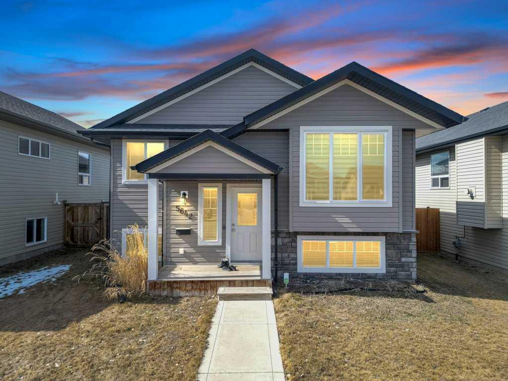 WELCOME TO THIS PERFECT FAMILY HOME WITH A DOUBLE, HEATED GARAGE... located in the growing community of Blackfalds where convenience meets comfort in a delightful residential setting. This inviting home features a practical layout with a total of 5 bedrooms & 3 bathrooms. The primary bedroom is spacious with a large closet, and has a 4 piece ensuite. 2 more bedrooms on the main floor and another full bathroom. The living room enjoys tons of morning sunlight through the large window, features hardwood flooring and a built- in electric fireplace with a shiplap feature wall. In the kitchen, loads of cabinets, a pantry, stainless appliances, and the perfect gathering place for families. Adjacent to the kitchen is the dining area with access to the deck and back yard. The basement offers a massive family room with a TV area and plenty of room for a pool table or play area for the kids, 2 more bedrooms, 4 piece bathroom, in floor heating (rough-in)and a laundry room adding to the practicality and value of this well-structured home. The yard is fully fenced with 23x23 heated, detached garage. Living in Panorama Estates, positions you in a great neighborhood from a host of amenities and conveniences: Families will appreciate the proximity to schools and playgrounds. Enjoy leisure and activities at the park just down the street. This charming property holds the key to a balanced lifestyle, Whether you're a growing family or a savvy investor, this property offers endless possibilities in a great location. See it today!